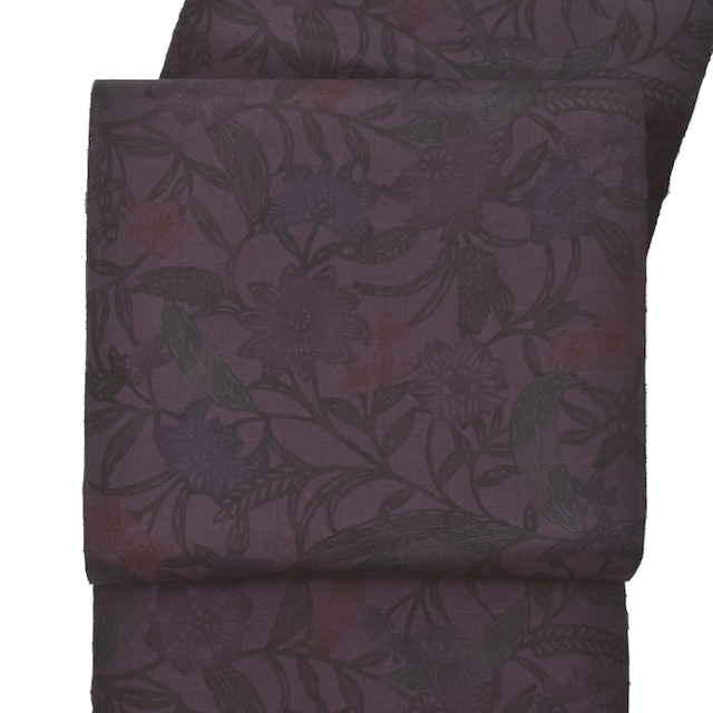 【商品について】 ・名古屋帯・全通柄模様・素材:絹 ・サイズ:幅 約 31cm 長さ 約370cm 【合わせるお着物】小紋・御召・紬 【場面】 カジュアル 【季節】 春・秋・冬 【商品番号】 21953 シックな中に潜む・・彩どり♪ さぁーー!粋好きさん集合です! 江戸紅型染め 唐花文様 紬 九寸 名古屋帯 ご紹介! コチラの帯は 東京で工房で染められた 江戸紅型染めの染め帯となり 一見、、「ん??真っ黒??」 と思われそうですが、、 いえいえいえ!!!違うんです! 先に、通常通りに 青系や、緑系、黄色系や朱系の色で 柄を施し、蒸しを掛け、色を定着させた後に 再び、その上から紫みを含んだ色を施すことで 単なる紫とは違うお色みに♪ 染めの工程を2度も行い 色を定着させる“蒸し”も、もちろん2度行う この手間暇があってこその表現であり 要するに・・通常よりも2倍の手間をかけた帯! そりゃぁ~いい味をだすわけですよね! そのため、、微妙に色の入った柄行は 単色とは違う、深い色の中に “ちょこっと覗く” この色の表情がたまらない♪ 一目で惚れ込み 仕入れてきました♪ シックなトーンの中から覗く微妙な色みは 「粋」でいて「お洒落」さんに見える帯♪ 帯地は十日町の紬地が使用されておりますので 小紋や御召、紬着物との相性良し♪ もちろん!存じております! 柔らかく優しいお着物コーデの帯でなく 日頃から、シックで粋なコーデ”が お好きなかた! そう!あなた♪ 今!スマホ/パソコンでコチラの帯を見て 目がうっとり♪になっている方に届くように 仕入れてきましたよ~♪