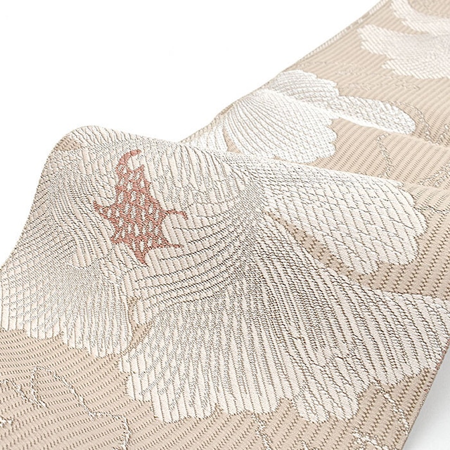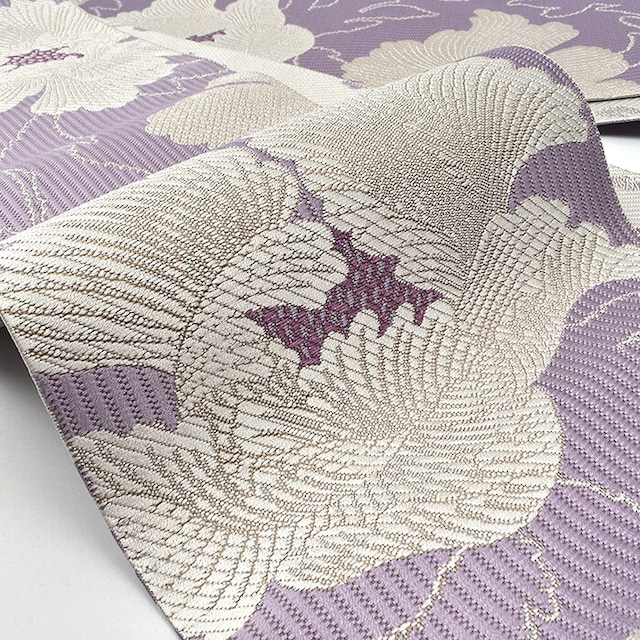[半幅帯]博多織 老舗 協和織工場 謹製 白牡丹 両面柄 正絹 日本製(商品番号:21763)
