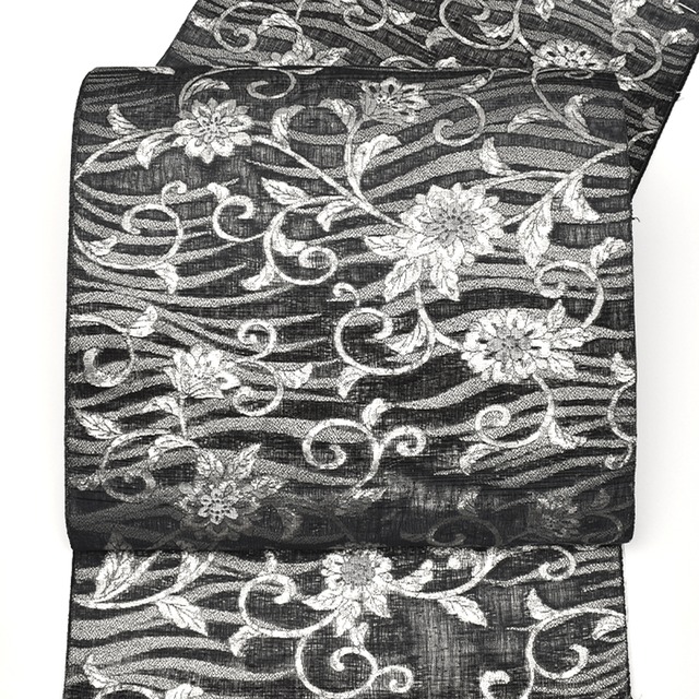 [名古屋帯](オールシーズン帯)西陣織 華翔苑 謹製 銀彩 唐花文様 九寸帯 正絹 日本製(商品番号:21948)