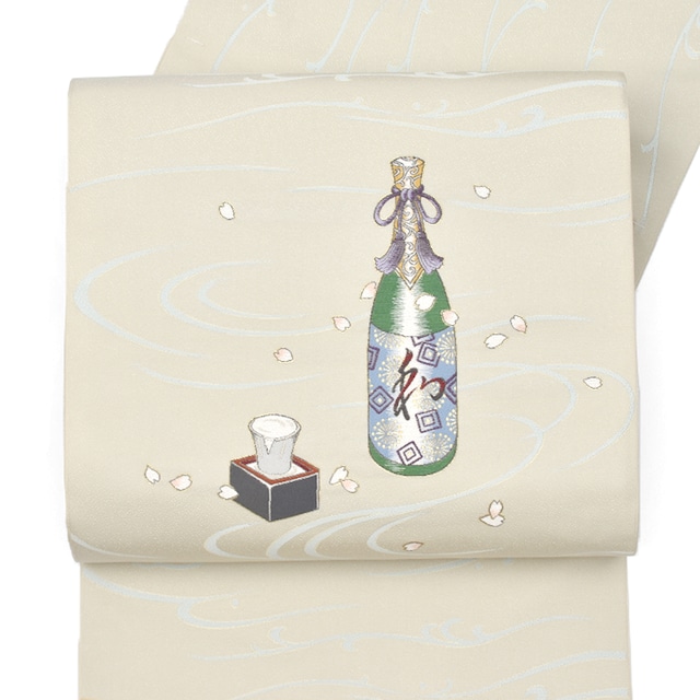 [名古屋帯]京の老舗 西陣 まいづる 謹製 春の日本酒 九寸帯 正絹 日本製(商品番号:21894)