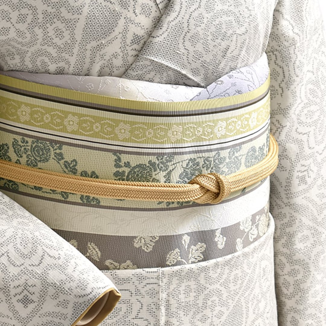 【商品について】 ・半幅帯・全通柄模様・素材:絹 ・サイズ:幅 約17cm 長さ 約410cm 【合わせるお着物】小紋・御召・紬 【場面】 カジュアル 【季節】 春・秋・冬 【商品番号】 22037 シンプルに白系だからこそ! どんなお着物でも合わせやすさは 無敵! 半幅帯 十日町紬 十字絣文様 お仕立て上がり帯 ご紹介! コチラの半幅帯は 新潟県 十日町で織り上げられた 紬地であり 紬地ではあるのですが 暖かみある生地の質感ではなく 触ると、サラ~っとした 質感となりますので どちらかといいますと 春のお着物コーデに合います。 帯地は真っ白ではなくアイボリー系で 少し温かみがある色トーンに 細かな“十字絣”文様が施されており 全体で見ると、薄いグレー系の帯に見え グレー系の帯は、真っ白の帯よりも お着物の色を選ばず、濃い、薄い どちらにも馴染む色と言われており、 実際におびやでも、色々な着物に 合わせてみたのですが、 多くの色みのお着物に自然に馴染むと 感じました。 柄もシンプルですので お着物の柄とケンカすることなく メインのお着物の柄を しっかりと引き立たせてくれる 控えめな “脇役”に徹してくれる 半幅帯となります! サイズのお話! コチラの帯は通常の半幅帯よりも 長尺/広幅に仕上がっており 長さは 約410センチありますので 色々な変わり結びも安心。 また広幅ですので、通常の前幅では 少しモノ足りない・・ もう少し広くしたい!という方には 通常前幅 15.5センチに対し コチラは約17センチですので ご満足いただけます♪ 柄は全通織ですので 前腹の柄を気にすることなく お締め頂けるポイントも お見逃しなく♪