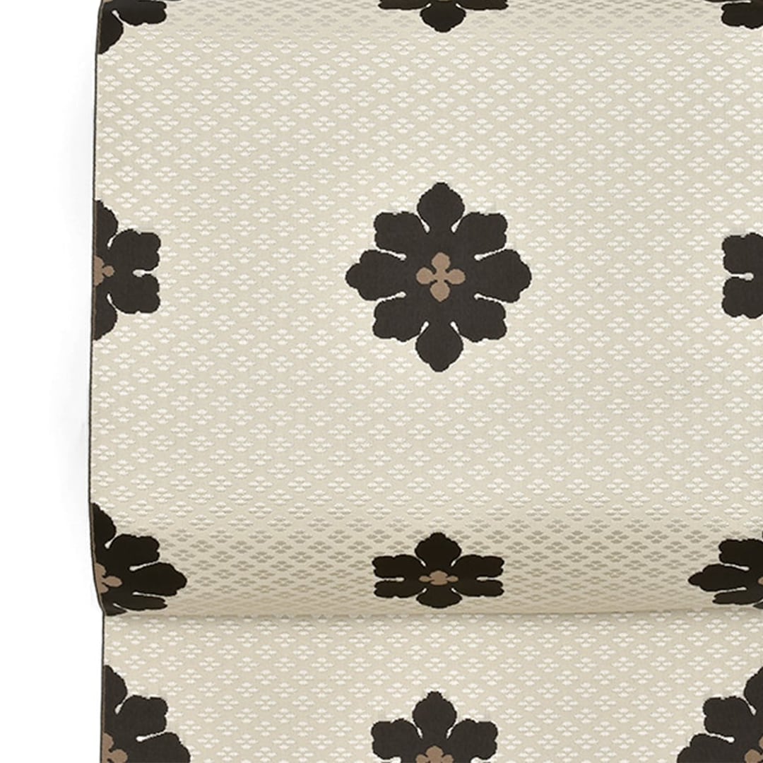 [半幅帯]博多織 老舗 協和織工場 謹製 白茶牡丹 両面柄 正絹 日本製(商品番号:20774)