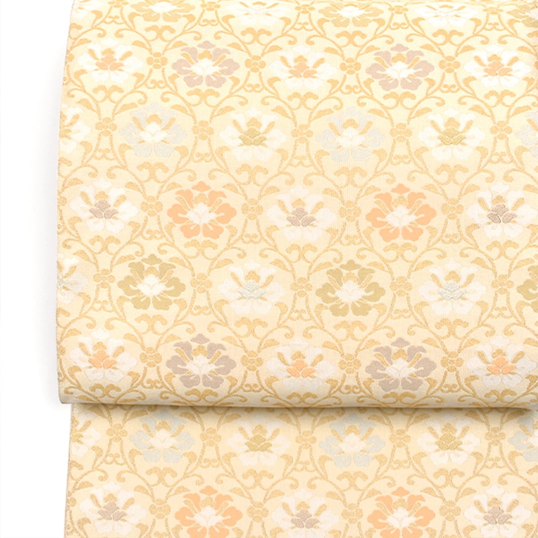 [名古屋帯]西陣織 名門 藤原織物 しょうは織 正倉院草花文 九寸帯 正絹 日本製(商品番号:21760)