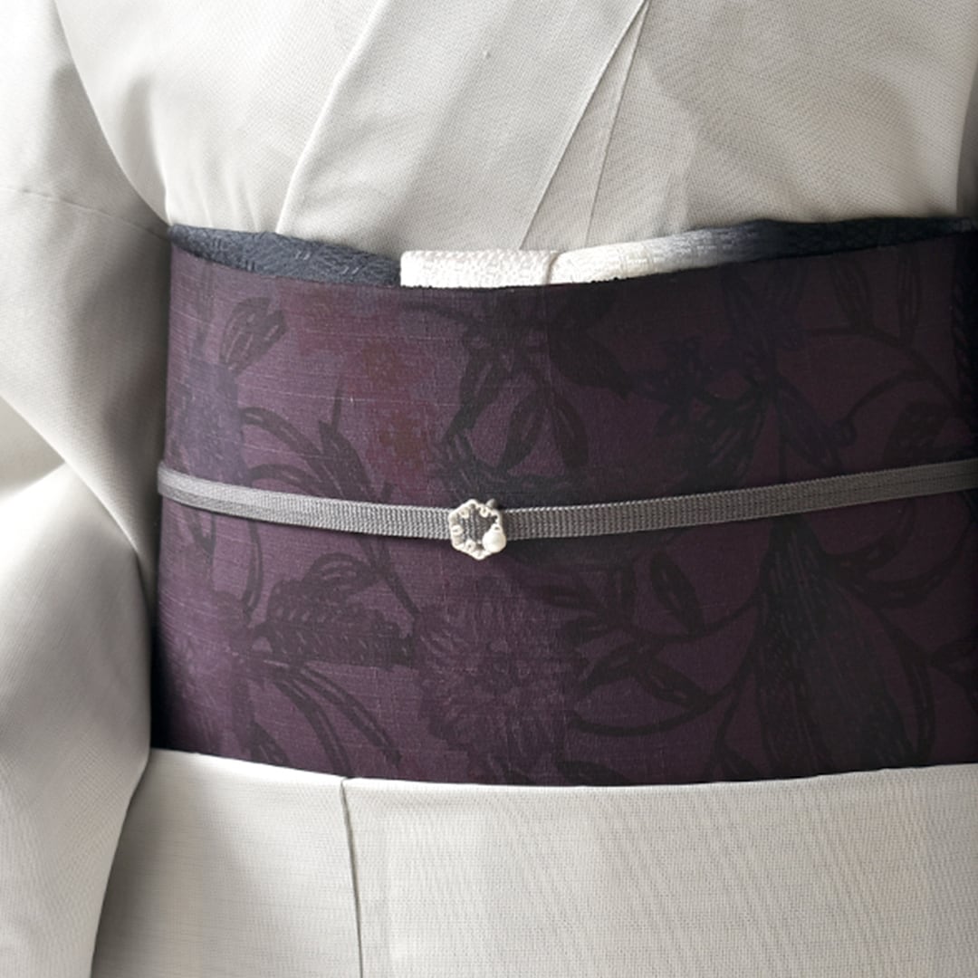 【商品について】 ・名古屋帯・全通柄模様・素材:絹 ・サイズ:幅 約 31cm 長さ 約370cm 【合わせるお着物】 小紋・御召・紬 【場面】 カジュアル 【季節】 春・秋・冬 【商品番号】 21960 伝統工芸士 6人が作り上げる 西村織物さんのツーランク上の博多帯! 博多帯 本場筑前博多織 名門 西村織物 謹製 風通織 花むすび くちなし 八寸 名古屋帯 ご紹介! 西村織物さんには、 帯の製作工程それぞれに 伝統工芸士さんがおられ そうです!西村織物さんには 伝統工芸士が6人もおられ ・・・今さらっと言いましたが 一人おられただけでも凄いのに! 6人も!!! 帯が作られるのに 整経、糸染め、紋衣装/デザイン、織、製織 と、数々の工程がある中で この工程に携わる職人さんの中に 6人も伝統工芸士がいるということは、、 そう!西村織物さんの帯は 「伝統工芸士で作る博多帯」なのです! 上記の工程の多くは、通常 社内ですべてまかなうことはなく 一部を外注することが多いのですが 社内ですべて完結することで この帯はどのようなイメージ/コンセプトなのか など、作り手間で思いが共有され織られるため 帯の完成度が高い! と、、私がわざわざお伝えしなくても 西村織物さんへの仕事の質の高さは 憧れとして皆さんご存じかと思いますが、、 あえて!この帯の凄さを 言わせて頂きますよーー!! まず!触ると、通常の博多帯よりも肉厚! それも!ブラタク糸と呼ばれる 上質な絹糸を使用することで 「隠していても出ちゃう♪」 絹本来の艶は、金銀糸の光沢よりも品よく 全体に程よい明るさを 感じさせてくれるのですよね♪ 帯地全体に地模様として 細かな“菱花”が入っているのですが 通常、地模様はそこまで存在感がなく 申し訳程度に入っているのですが 西村織物さんの織り上げる地模様は、立体感があり 「織りましたよー!」と主張する地模様は、 決して!脇役とは呼べない! 正直、メインの柄が無くても 帯として成立する地模様! もうここから西村織物さんの帯は 他との違いを見せつけられるのですよね! そして・・メインの柄である くちなしの花は 西村織物さんの得意とされる 他の機屋さんでは見ない風通織(ふうつうおり) にて織り上げており 触ると、サラ~っとした優しい質感が 柄の「黒」を、柔らかく見せ、粋過ぎない だから幅広く、人を選ばず お締め頂けるのですよね! また!!!ここも見て欲しい!! コーデ画像の前腹部分なのですが、 前腹部分は、帯締めが通る部分に 柄が入っておらず 帯柄の上に帯締めが重ならないことで スッキリとした前腹となり、、 また、帯締めの色が入ることで 帯回りが完成するという・・・ そう♪ 季節の色を帯締めで選んだりと コーデが楽しくなる帯にとなります♪ 締めた時どう見えるか? 楽しめるか?まで考えられ 紋意匠/図案を作られている これは 締める方の目線に合わせた作りで、 こういう帯こそ!長く締められる帯 なのですよね~♪ くちなしのお花は・・ ジンチョウゲやキンモクセイと並ぶ 三大香木の1つで 特に、夜に香りが強くなるお花であり 帯からお花の匂いがするわけではない?のですが 織の繊細な雰囲気を見ると 良い香りが漂ってきそうな織文様であり また、くりなしの花ことばには・・ ”幸せを運ぶ・優雅・洗練”といった意味があり 締めているだけで気分が上がる柄行なのも 嬉しいですよね♪ お値段は・・通常の博多帯よりも少々お高いですが ご安心あれ!!!お値段以上の満足感を 帯とセットでお届けさせて頂きます♪