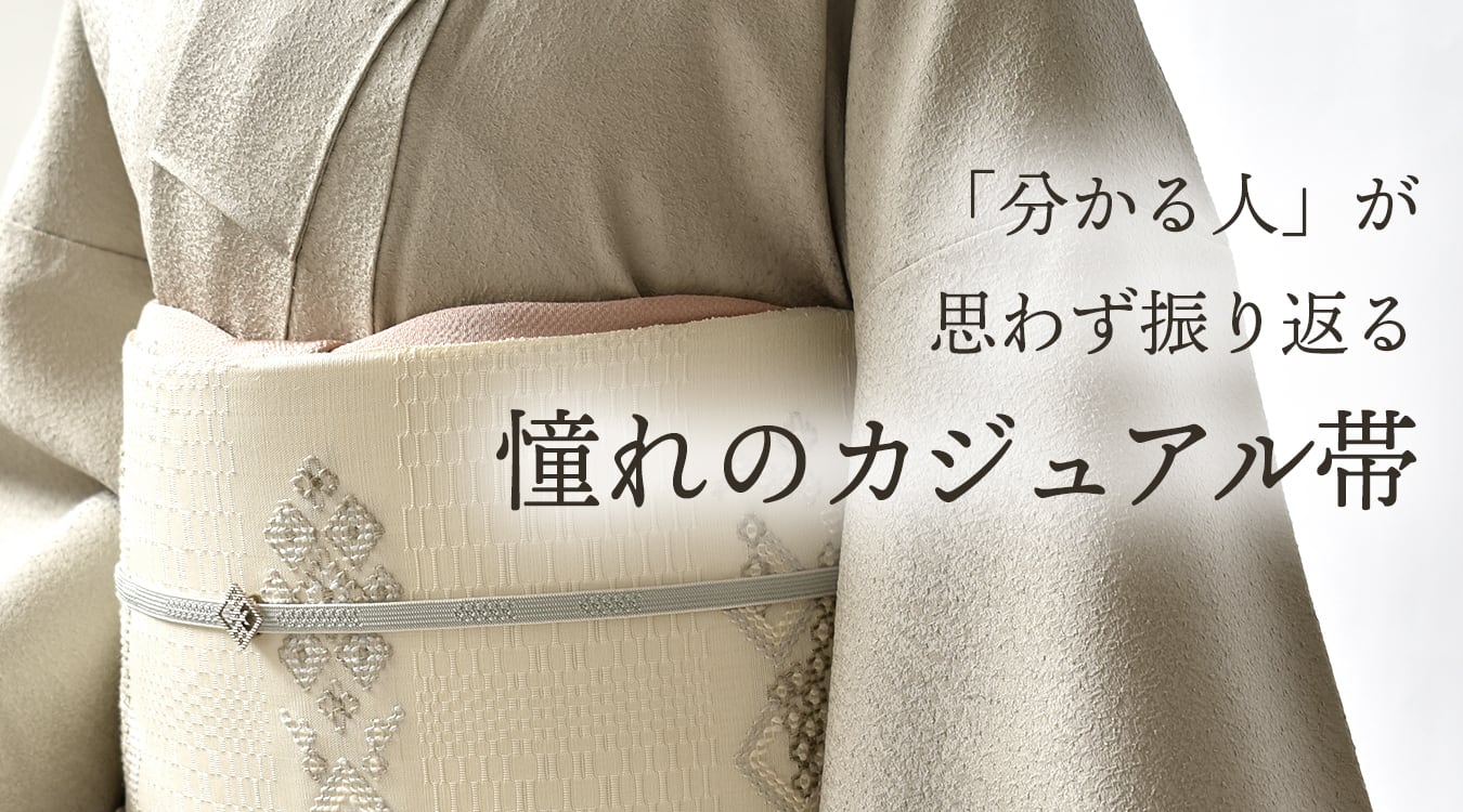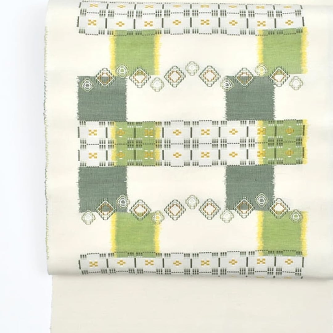 ※お電話でのご注文も大歓迎です! お気軽にお問い合わせくださいね ⇒ 0120-644-293(フリーダイヤル) ------------------------- 【商品について】 ・名古屋帯・お太鼓柄模様・素材:絹 ・サイズ:幅 約31cm 長さ 約370cm 【合わせるお着物】小紋・御召・紬 【場面】 カジュアル 【季節】 春・秋・冬 【商品番号】 22042 2026今年の新作! 沖縄の工房で出会った 今までの柄付けとは違う魅力に 一目惚れ♪ 南風原 本場琉球 手花/絣文様 伝統工芸士 野原俊雄 作 手織り 九寸 名古屋帯ご紹介! コチラの帯は、沖縄の南風原にある 伝統工芸士 野原俊雄さんの工房に 直接お伺いし 織り上がってきたばかりの中から 輝いて見えた♪ 新柄に惹かれ♪ 仕入れてきました!! 凄く・・余談ですが・・ 久しぶりの訪問に 伝統工芸士 野原俊雄さんが 「鈴木さん ようこそ!」と、、 数多くの方が訪れる工房で しかも1年ぶりなのに・・ 名前を覚えてくれている・・感激!! 商談に入ると、、 商品のお話以上に盛り上がったのが! 沖縄の南風原地区で行うアミシと呼ばれる 雨乞いの行事の“綱引き” のお話・・ そうと聞くと、よくある行事のお話 かと思いきや! いえいえ!過激な綱引きが行われるらしく! そんなお話や、 私たちが住む地域とは違う、 沖縄のお正月料理のお話・・そして 飾車を皆が持ち、97歳をお祝いする “カジマヤー”という行事のお話などなど 初めて聞くお話の数々に盛り上がり♪ 予定よりもだいぶ、、お時間を頂きました! すいません、、この帯の柄とも全く関係ない お話を長々と、、、でも、、凄く楽しい時間で♪ まだ、、沖縄のお話をしたいのですが しぶしぶ??帯のお話に戻しますね、、 コチラの帯は伝統ある南風原の技法 花織、刺繍のような手花織(ティーバナ) そして、ぼやけたような四角い部分は 絣紋様と、3つの伝統技法が 施された柄行となり、 私がこの帯に一目で惚れ込んだのは、 「空間の使われ方」であり 花織を敷き詰める方が 豪華に見えるかもしれませんが・・・ いえいえ!!! 空間を作りながら魅せる花織や絣の柄は 一つ一つがの琉球織の素晴らしさが 細部に渡り、ハッキリと感じられ 空間が生み出す”琉球らしさ”や ”ゆったりとした時の流れ”を 感じさせてくれる、、 この余白こそが贅沢で、 帯の魅力をあげている ヒ・ミ・ツです♪ 紬や小紋、御召着物にお締めいただく 最上級のカジュアル帯として、堂々と! お締め頂きたく おびや店長として、自信を持って おススメさせて頂きます! この他何かご不明な点が御座いましたら 直接仕入れてきた私が 熱く!語らせて頂きますので お気軽にお電話(フリーダイヤル)やメールにて お尋ね下さいね♪