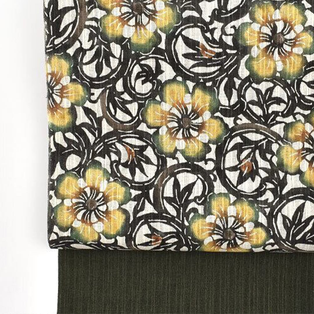 ※お電話でのご注文も大歓迎です! お気軽にお問い合わせくださいね ⇒ 0120-644-293(フリーダイヤル) ------------------------- 【商品について】 ・名古屋帯・六通柄模様・素材:経緯糸 諸紙布 ・サイズ:幅 約31cm 長さ 約370cm 【合わせるお着物】 (袷/単衣/夏)小紋・御召・紬・麻 【場面】 カジュアル 【季節】 オールシーズン 【商品番号】 21789 間違えなく! このクオリティーでお値打ち帯! 諸紙布 紅型染め 小千谷 西脇商店 謹製 八寸 名古屋帯 オールシーズン帯 ご紹介! コチラの帯を作られたのは 新潟県 小千谷にある西脇商店さんであり 江戸時代 安永二年 1773に創業と 小千谷地区で老舗であり、その西脇商店さんが 諸紙布の上に型染めを施した 逸品なのですが おびや店長鈴木が一目惚れで 仕入れてきた帯となり♪ 正直言うと、第一印象は・・・ 「えっ?諸紙布で紅型調の型染めで・・ このお値段でいいの?間違えてない?」 と、本当に感じた・・はい!! お値段以上の価値を、締めるとさらに! 感じて頂ける逸品帯! 一目惚れした店長鈴木が、自信を200%持って おススメさせて頂きます! 型染めの中でも、輪郭がハッキリではなく、 染めの工夫によって、少しぼやけたような 柔らかな風合いを染料で表現することで、、 例えば・・琉球のびんがた染めですと ハッキリとした輪郭が、キツイ印象を 持たれる方でも、 柔らかさの中に感じる、鮮やかさは 幅広い方に楽しめる紅型染めとなり 余談ですが・・ 柔らかな印象の紅型染めに、合わせやすさを 感じられる方も多く、人気が高いのですね! 帯地の糸は紙糸が使用されており、 紙布とは、和紙を細く切り撚りをかけて 緯糸として織った布のことをいい、 経糸と緯糸とも両方に、紙布を使用し 織り上げた帯を特に諸紙布と言います。 紙の糸・・と聞きますと、 頼りない?溶ける?と、思われる方も おられるのですが、 いえいえいえいえいえ! 溶けることはなく!絹よりも丈夫な糸として 扱われており、、 近年は、紙布の糸を作る職人さんが激減しており、 そのため経緯糸ともに紙布を贅沢に使用する帯は とても貴重な帯とされております! 触った質感は、麻ののようなザラついた 天然素材の風合いを感じ取れます。 また、諸紙布の帯地は一年を通して 締められる帯地とされているのですが アップの画像でもお分かりのように 透けた織の風合いとなりますので、 気になる方は 単衣/夏の帯として お締め頂ければと思います。 柄は抽象的なお花の柄となり 季節を限定する柄ではありませんので 単衣、夏はもちろん、、これぐらいの透け感なら! と、ご自身で感じられましたら 真冬は・・さすがにお勧めしませんが 気温が温かくなっても、まだ袷の季節であっても 問題なくお締め頂け! そう考えると・・ 一年を通し長くお締め頂ける帯なのですよね♪ ステキな柄、お気に入りの柄になれば 長く締めたいですよね♪