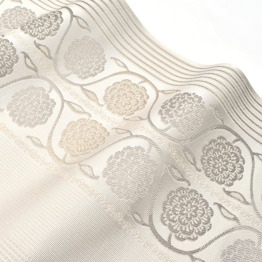 【商品について】 ・名古屋帯・六通柄模様・素材:絹 ・サイズ:幅 約31cm 長さ 約370cm 【合わせるお着物】 (袷/単衣/夏)・無地・小紋・御召・紬・麻 【場面】 カジュアル 【季節】 オールシーズン 【商品番号】 21948 華翔苑さんが考え抜き織り上げた オールシーズンお締め頂ける帯!! 西陣織 華翔苑 謹製 銀彩 唐花文様 九寸 名古屋帯 オールシーズン帯 ご紹介! 西陣織の機屋さんの オールシーズンお締め頂ける帯の ご紹介です! 別名・・衣織と呼ばれる 華翔苑さん独自の、特殊な織は 触って頂くと、、なるほどね~♪と感じる 羽衣のイメージ通りの フンワリとした優しい質感となり また、アップの画像を見て頂くと お分かりのように、全体によろけ織という 糸が揺らいでるようにみえる織が施され こちらが入ることで、単衣や夏の時期に 暑苦しく見せず、でも! 透け感を感じる訳ではありませんので 気温が下がる季節に締めても 寒々しく見えない、 ねっ!考えられておりますでしょ~♪ これぞ! オールシーズン締められる帯地の真骨頂! そこに!ギラギラし過ぎない、、 でもちょっとキラキラとした 明るさが欲しい・・・ 上品なラメのような キラキラした風合いを表現が 華翔苑さんが得意とされる “銀糸”使いの匠技が光ります! 光の加減で、銀糸の明るさが移り変わり 屋外などの自然光の下では より魅力が溢れ出す帯なのですよね♪ 帯地は、手の取ると 皆さんがお持ちの箪笥の中にある どの西陣織の帯よりも、軽い! 仕上がりとなりますので 気温が高くなってくる季節などに 西陣織の重い帯はちょっと暑い、、 と懸念されていた方も こちらの帯でそのストレスが 完全に払拭されます! 一年を通して締められて しかも西陣織の袋帯が1本あれば 色々なシーン、お着物・場所・季節に 合わせられます! ※黒芯がおススメ! お仕立ての際に入れる帯芯は 通常は「白」なのですが コチラの帯に関しては 「黒」の帯芯を入れた方が、より シックな雰囲気に仕上がりますので ご希望の方は・・ご注文の際 「黒芯 希望」とお伝えして頂きますと もちろん!無料で♪ 黒芯を入れさせて頂きますので お気軽にお申し出ください。