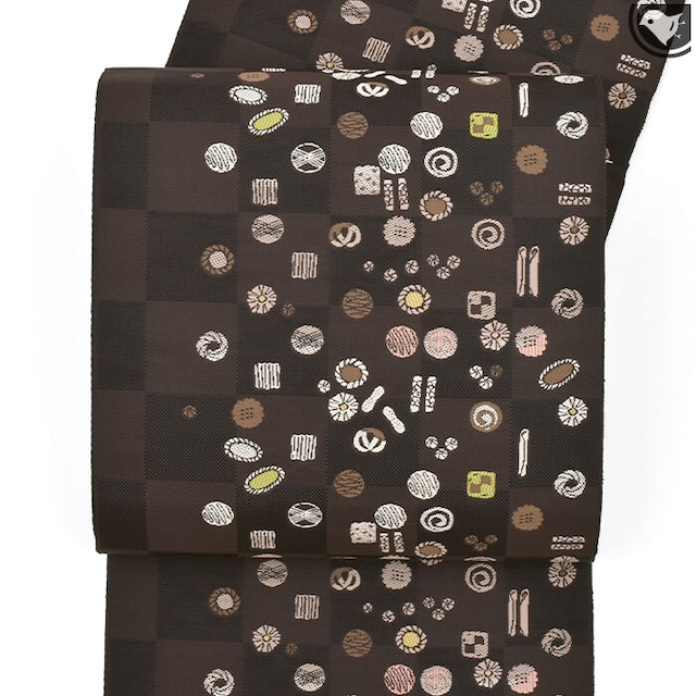 [名古屋帯]博多織 協和織工場 謹製 洋菓子文様 八寸帯 正絹 日本製(商品番号:20529) お仕立て代込み!送料無料!