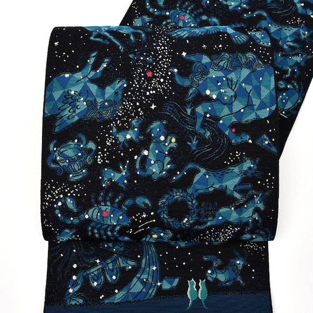 [名古屋帯]博多織 老舗 協和織工場 謹製『絲衣』夜空のプラネタリウム 八寸帯 正絹 日本製(商品番号:21701)