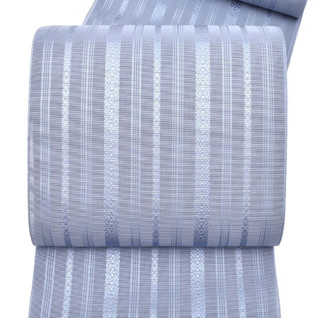 ※お電話でのご注文も大歓迎です! お気軽にお問い合わせくださいね ⇒0120-644-293(フリーダイヤル) --------------------------- 【商品について】 ・名古屋帯 ・全通柄模様 ・素材:絹 ・サイズ:幅 約 31cm 長さ 約 370cm 【合わせるお着物】 ・単衣着物・夏着物 (・小紋・御召・紬・麻・浴衣) 黒木織物さん 完全別注織り! 紗織 五献上柄の登場です! 博多織物名門 【黒木織物】 紗献上柄 最高級の金印 八寸 名古屋帯のご紹介です!! 今まで、仕入れに行くと、 「献上柄の博多帯はよくある柄で、面白くない!」 と勝手に思い、へそ曲がりの私は、 最近、仕入れてはこなかったのですが・・・・・ この今までに無い、「深い濃い紫色」 の博多帯を見た瞬間に、 心の中では 「博多帯さん・・・生意気言ってスイマセンでした・・・」 と、思いっきり悔い改めさせられたぐらいに この色に惚れ込み仕入れてきました!!! よくある色合いの献上柄博多帯は、見慣れたせいもあり、 新しさ・新鮮さを感じる事は無かったのですが、 色合いを変える事により、見慣れた献上柄の博多帯とは 全く違う、現代に合う博多帯として、 ステキ感いっぱいに目に飛び込んできます♪ また、ただ色合いが珍しいだけではなく、 『もじり織り』 が施されているのがポイントとなり! 制作が手間とされている、経糸の量を増やすもじり織りは 他の博多帯とは違い、細かな紗織り(小さな穴)は、 さすが博多帯の最高級「金印」を付けられた、 名門 黒木織物ならでは、こだわりを感じられ、 「もじり織り」の締め心地の良さを感じた瞬間! 本当の 「もじり織り」の魅力に気付かされます!! 夏・献上柄博多帯は、この夏、絶対!活躍してくれる帯に間違いありません! もし・・??夏の紗献上の博多帯をお探しなら、、、 是非!!こちらの帯に決めちゃって下さい!!! ちなみに、こちら色合いの博多帯は、黒木織物さんが、 限定品で作られております。 柄は全通織模様となります。