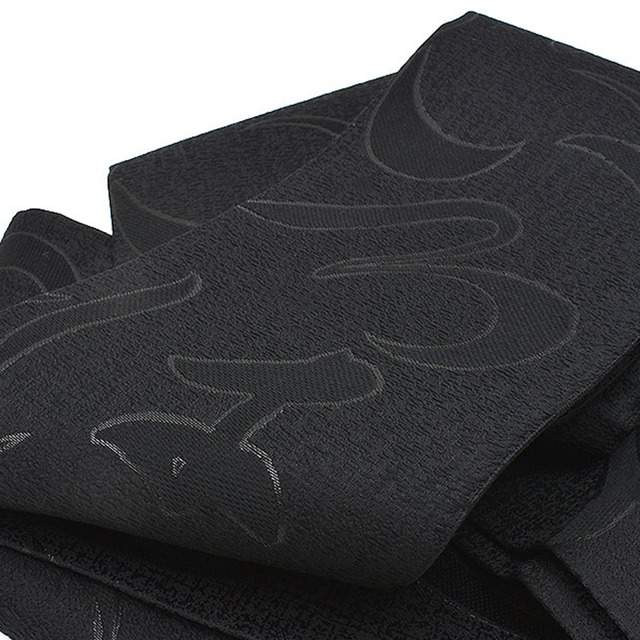 [半幅帯]【長尺】(お仕立て上がり)西陣織 老舗機屋 謹製『漆黒いろは』正絹 日本製(商品番号:17540)