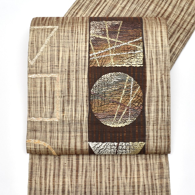 [名古屋帯](お仕立て上がり)二代目 川村久太郎 作 タッサーシルク 九寸帯 正絹 日本製(商品番号:21901)