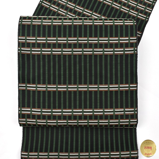 [名古屋帯](オールシーズン帯)西陣織 名門 有栖川織物 謹製 吉野間道 格子 九寸帯 正絹 日本製(商品番号:21939)