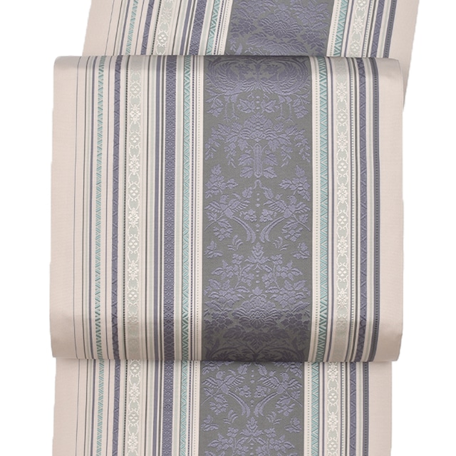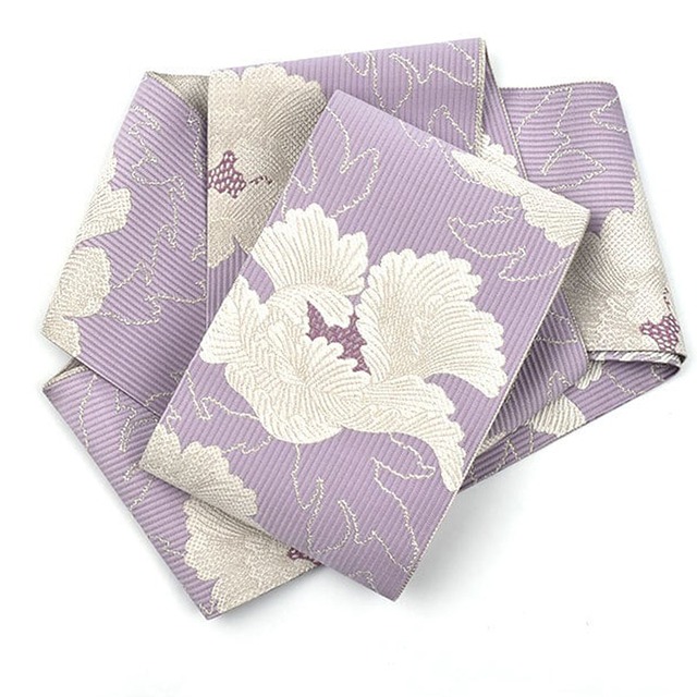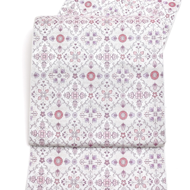 [半幅帯]博多織 老舗 協和織工場 謹製 白牡丹 両面柄 正絹 日本製(商品番号:21763)