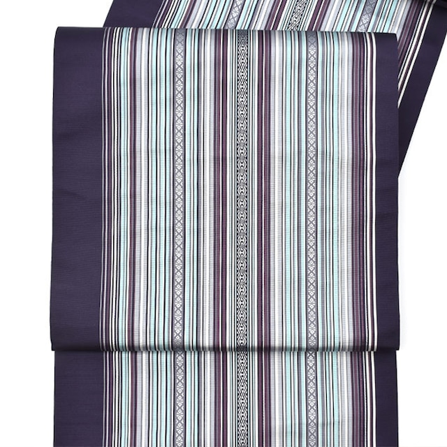 [名古屋帯]博多織 老舗 原田織物 謹製 献上縞 九寸帯 正絹 日本製(商品番号:21688)