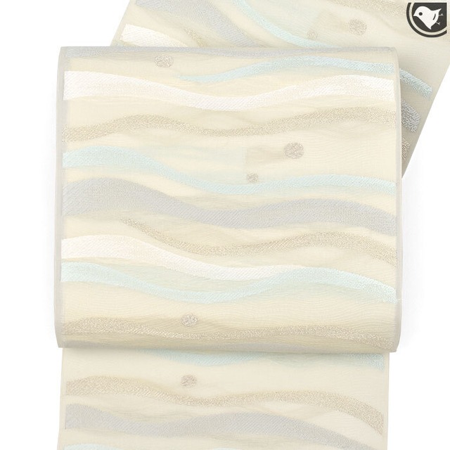 [名古屋帯](単衣/夏)西陣織 老舗 ふくい 謹製 波文様 九寸帯 正絹 日本製(商品番号:22045)