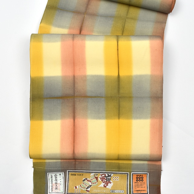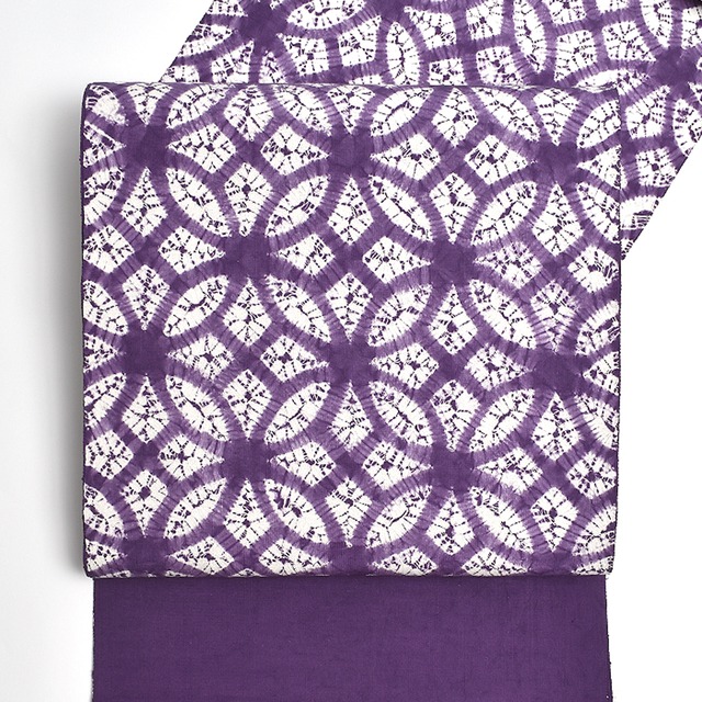 ※お電話でのご注文も大歓迎です! お気軽にお問い合わせくださいね ⇒ 0120-644-293(フリーダイヤル) ------------------------- 【商品について】 ・名古屋帯・全通柄模様・素材:絹 ・サイズ:幅 約31cm 長さ 約 370cm 【合わせるお着物】小紋・御召・紬 【場面】 カジュアル 【季節】 春・秋・冬 【商品番号】 21888 信州の上田紬地に 有松の板締め絞りを施しました! 板締め絞り 老舗 熊谷 謹製 信州 上田紬地 九寸 名古屋帯 ご紹介! コチラの帯は有松絞りの老舗 熊谷さん作 愛知県 名古屋市の有松と鳴海の地域 有松駅を降りてスグに広がる 絞り街道の入り口にお店を構えられ そちらに直接うかがい、拝見した、 今ではできる職人さんがほとんでいない “板締め絞り”の奥深さにひかれ♪ おびや完全オリジナルの 絞り染め帯として染めていただきました! 板締め絞りは随所に職人さんの 手作業の風合いを感じて頂け 格子状の柄はどれも測ったような キッチリとした格子柄ではなく、 規則正しい格子は、無機質な表情 となるケースもあるのですが、 こちらの帯のように不規則であることで 職人さんの手作業の暖かみと 柄の趣を感じていただける そう♪ 紬好きの方がお好きな風合いが 板締め絞りには 出せるのですよね♪ 目を引くのが黄色ですが 黄色系は 白、黒、グレーなどの モノトーンカラーや カーキやベージュなどのアースカラー、 ブルー、ネイビー、ブラウンなど 多くの色合いとの相性が良い色ですので そう考えると、お持ちの箪笥の中にある お着物3枚以上に♪合わせられる 帯でもあるのですよね♪ そして!この伝統ある絞り染めが より映えるために大事となる、、 上質な帯地をご用意しました♪ 結城紬、大島紬と並んで日本の三大紬の一つ とされ信州の上田紬を使用しました! 上田紬の証となる “六文銭”の証紙がその証! 軽くて丈夫で、ランダムに凹凸のフシがあり 程よい紬らしいザラついた質感が 上田紬の地の特徴となります。 帯地を見る限り 真夏以外の3シーズン 単衣・袷と長くお締め頂けます! 柄は全通柄となりますので どう締めようが! 前腹部分の柄は容易に! 何の心配なく、お締め頂いても柄が決まる! 帯を締めるのに慣れていない方もご安心!
