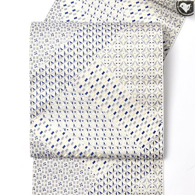※お電話でのご注文も大歓迎です! お気軽にお問い合わせくださいね ⇒ 0120-644-293(フリーダイヤル) ------------------------- 【商品について】 ・名古屋帯・全通柄模様・素材:絹 ・サイズ:・幅 約31cm 長さ 約370cm 【合わせるお着物】 ・小紋・御召・紬 【場面】 カジュアル 【季節】 春・秋・冬 【商品番号】 21674 程よい色使いこそ!強調し過ぎることなく 長くお締め続けられるのですよね! 西陣織老舗機屋 謹製 切子割付文様 経浮かし錦織 八寸 名古屋帯 のご紹介です! 店長鈴木のコチラの帯への心意気?? こちらは、、私店長鈴木が、こちらの帯を 織って頂いている機屋さんを訪れ、 画像を見て頂くとお分かりのように 青にほんの少し赤みを感じる糸色の魅力に惚れ込み♪ この糸をこの部分に入れて下さい! とお願いした、おびやオリジナル配色の1本! だからこそ! この帯に愛情たっぷりの♪ ひいきめ文章?にて 書かせていただきます! 今回は スッキリ色の青系の色合いと グレー系・白、そして 少し温かみを感じるベージュ系と スッキリ/温かみ 両方の色味を取り入れることで スッキリと見せたい季節にも♪ 温かみを表現したい季節にも♪ それぞれの季節に自然な馴染みが生まれるよう 配色して頂きました! 柄のお話し! 細かく色々な柄が入った凹凸の織は 一目見て・・ガラスの“切子”を連想させる文様で 西陣織でこのタイプの帯を織り上げたのは こちらの機屋さんが初めてとなる 今までになかった八寸 名古屋帯となります。 この、今までにない織の表情 “経浮かし”と呼ばれる、経糸を浮かしながら ボリュームを出す事で凹凸を出しており、、 すいません・・ややこしい専門的な説明で・・・ 要するに! 通常の西陣織で行う織よりも 手間をかけることで生まれる表情なのです! また、裏を見ると柄と柄に糸が全く! 渡っていない分、余計な糸がなく 軽い仕上がりでありながら 腰のある帯地なので 帯を締めるのが苦手な方も 容易にお太鼓をキレイに作れ 形を長くキープ! 柄は抽象的な割付文様が施され 季節を限定する柄行ではありませんので 帯地を見る限り 真夏以外の3シーズン 長くお締め頂ける帯となります。 お仕立てのお話し! コチラの帯は 帯芯を入れない 八寸名古屋帯“松葉仕立て”となり 帯芯を入れない分、厚さがなく 軽い仕上がりとなります。 手先の約30cmだけ半分に縫い合わせる お仕立てなので 締めた際に見える手先がキレイに見えます また、前腹部分は縫い合わされず 開いた状態になっておりますので 幅を少し広めに出すなど、ご自身のお好みで調整可 身長の高い方などに人気のお仕立てとなります!