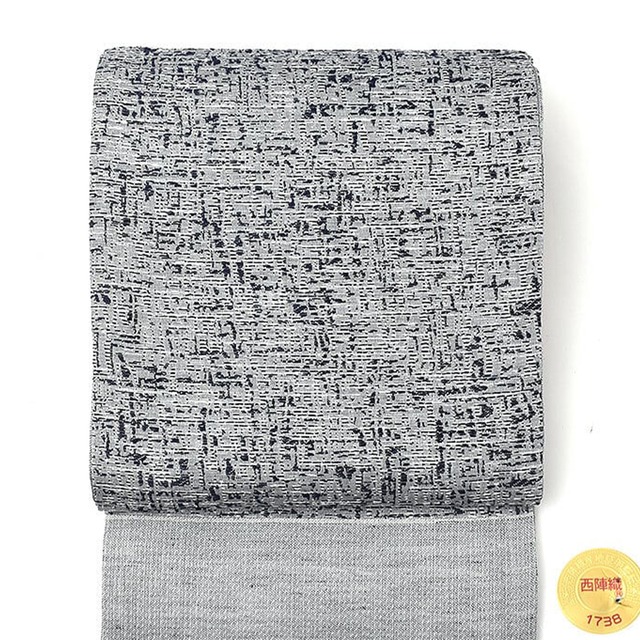 ※お電話でのご注文も大歓迎です! お気軽にお問い合わせくださいね ⇒ 0120-644-293(フリーダイヤル) ------------------------- 【商品について】 ・名古屋帯・六通柄模様・素材:たて糸・絹 よこ糸・麻 ・サイズ:・幅 約31cm 長さ 約370cm 【合わせるお着物】 ・無地・小紋・御召・紬 【場面】 カジュアル 【季節】 単衣/袷 【商品番号】 21498 織/組織/紋意匠の これぞ!プロの織 単衣/袷に締める名古屋帯 西陣織 老舗 沢本織物 謹製 織ツイード 緯糸 麻糸 名古屋帯 ご紹介 コチラの帯は西陣織の老舗 沢本織物さん にお願いし織り上げて頂いた おびや オリジナル名古屋帯となります! コチラの帯は 単衣と袷の季節に 締める帯として織り上げて頂いたのですが 経糸は絹で、なんと! 緯糸には麻糸を施すという 沢本織物さんの織技術があってこその 帯が完成したのですよね~♪ ん??麻糸が入るとそんなに違うの? と思われそうですが・・ 全然、風合いが変わるのです♪ 西陣織では緯糸に麻糸を入れる帯は ほとんど存在せず、、 まぁ~一言で言うと・・ メチャクチャ手間がかかる! しかし!その手間を惜しまないことで 独特な織の風合いが生まれました♪ 緯糸に麻糸が入る事で 一般的な西陣織の名古屋帯のような 重さは全くなく! 単衣にもお締め頂ける軽さとなるよう 織り上げて頂きました。 この風合いが出せるからこそ 沢本織物さんにお願いしたのですが 沢本織物さん店主さんは とにかく!織マニア!であり 特に柄を織る前段階で重要なプロセス 組織/紋意匠 作りに対する 探求心が強い職人さんであるため 複雑で、今まで思いつかないような織や 素材を使用し 採算関係なく帯作りをされる 織物好きにはたまらない 機屋さんなのですよね! 今回も 柄を見て頂くとお分かりのように ベースは薄いグレーで その上に“ツイード”のような織を 西陣織で施してしまう、この技術力! 経糸はグレーなのですが 色の入っている柄部分は麻糸を使用し そこに!こっそりと隠れた糸があり! 薄っすらとポツポツと入った 白の色をあえて!麻糸に合わせ 似た風合いの“和紙糸”を使用した : : すいません・・細かすぎるご説明で・・ よーーするに! どう見えるかを細かく計算し 糸や織を選んだり、工夫する事で シンプルではあるのですが 複雑さを感じる織に 高級感な帯という印象となるのですね♪ 織の魅力を感じてーー♪と帯が 話てかけてきそうな♪ これぞ!お着物通を唸らせる帯 なのですよね~! 柄は、和でも洋でも馴染む幾何学的な 印象を与えてくれる柄行となりますので 合わせるお着物の柄行を選ばず 単衣/袷に締める 軽い帯となります♪ 合わせる着物の種類は 無地・小紋・御召から 金や銀の糸が使用されていないため そう♪紬のお着物までと、幅広く 対応する帯となりますが、 個人的には 紬のお着物が 絶対映える!と確信あり!! 帯地のベースの色合いはグレーで 柄の色合いは 濃紺 となります。