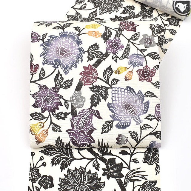 [名古屋帯]博多織 老舗 あやせ染芸 鈴木 康祐 作 東京紅型染め更紗 八寸帯 正絹 日本製(商品番号:20047)