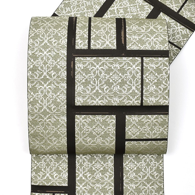 ※お電話でのご注文も大歓迎です! お気軽にお問い合わせくださいね ⇒ 0120-644-293(フリーダイヤル) ------------------------- 【商品について】 ・名古屋帯 ・全通柄模様・素材:絹 ・サイズ:幅 約 31cm 長さ 約 370cm 【合わせるお着物】小紋・御召・紬 【場面】 カジュアル 【季節】 春・秋・冬 【商品番号】 22161 昔見たデザイン性の高い 板ガラスの 文様を 織で表現した モダン柄帯! 本場筑前博多織 名門 西村織物 謹製 “窓だより” 八寸 名古屋帯 金印 ご紹介! 題名にある “窓だより・・”ただ・・ お洒落なお名前が付いているわけでなく! しっかりと何を表現したか?の ストーリーが 詰め込まれており 昔の民家の窓や障子にはめられていた 型板ガラスって、少しかすれたガラスの中に 文様が入っていましたよね♪ 現在ではほとんど製造されていない そのレトロで可愛いガラス窓の 芸術性の高いデザインをイメージされ 織りあげられており 昔の柄って今見ると 凄くお洒落なで 現代に合うデザインが多くあり、 そのデザインを今にお便りのように 帯の織として届られたという ストーリー♪なのです♪ ↑すいません、、自分で書いていて なぞなぞみたいな表現になり 伝わったかな、、、心配、、 帯のベースは“くすんだ緑色系”で その上に点々のような地模様が入り、 さらにその上に メインの柄が施されている“三十層の織” が帯に奥行きを与えてくれております。 そして! やっぱり西村織物さんといえば・・ 博多織でもトップクラスの 織の素晴らしさ♪ “ん??博多帯なの?” と言われないと分からないほど 絹本来の照りが生まれた上質な糸を 経糸を密に織り上げてることで 誰が見ても上質な帯と感じ取れる この表情を作りださるのが 西村織物さんの帯なのですよね~♪ 西村織物さんで織り上げられる糸の 多くが、ヨーロッパの高級ブランドで 使用される絹糸の中でも高級な絹糸が 使用されておりますので やはり!艶の違いが いかにも上質感ある 帯地と感じさせてくれます! 色数を多く使用し、織の風合いを ごまかさず色数が少ないからこそ 織や糸質がダイレクトに伝わり、、 これは 織りや糸に自信の現れ♪ こちらのようなシンプルな配色で上質 な帯こそ飽きる事なく長くお締め頂ける 帯となりその条件を満たしている博多帯 なのです! 帯地は 程よい硬いがあり、固さがあっても 帯芯を入れない八寸名古屋帯 “松葉仕立て”となりますので お仕立て上げても帯は厚く、重くはならず 程よい張りがお太鼓を作りやすく してくれるのですよね! 柄は“全通織模様”となりますので “前腹の柄出し”を気にする事なく どんな締め方でも 柄がキレイに 出せるのが 全通織のいいところ♪