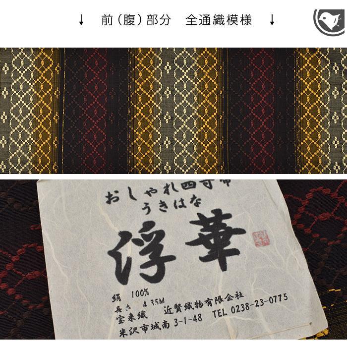 [半幅帯]【新古帯】米沢紬 山形県 近賢織物 謹製『浮華』正絹 日本製(商品番号:21673)お仕立て代込み!送料無料!
