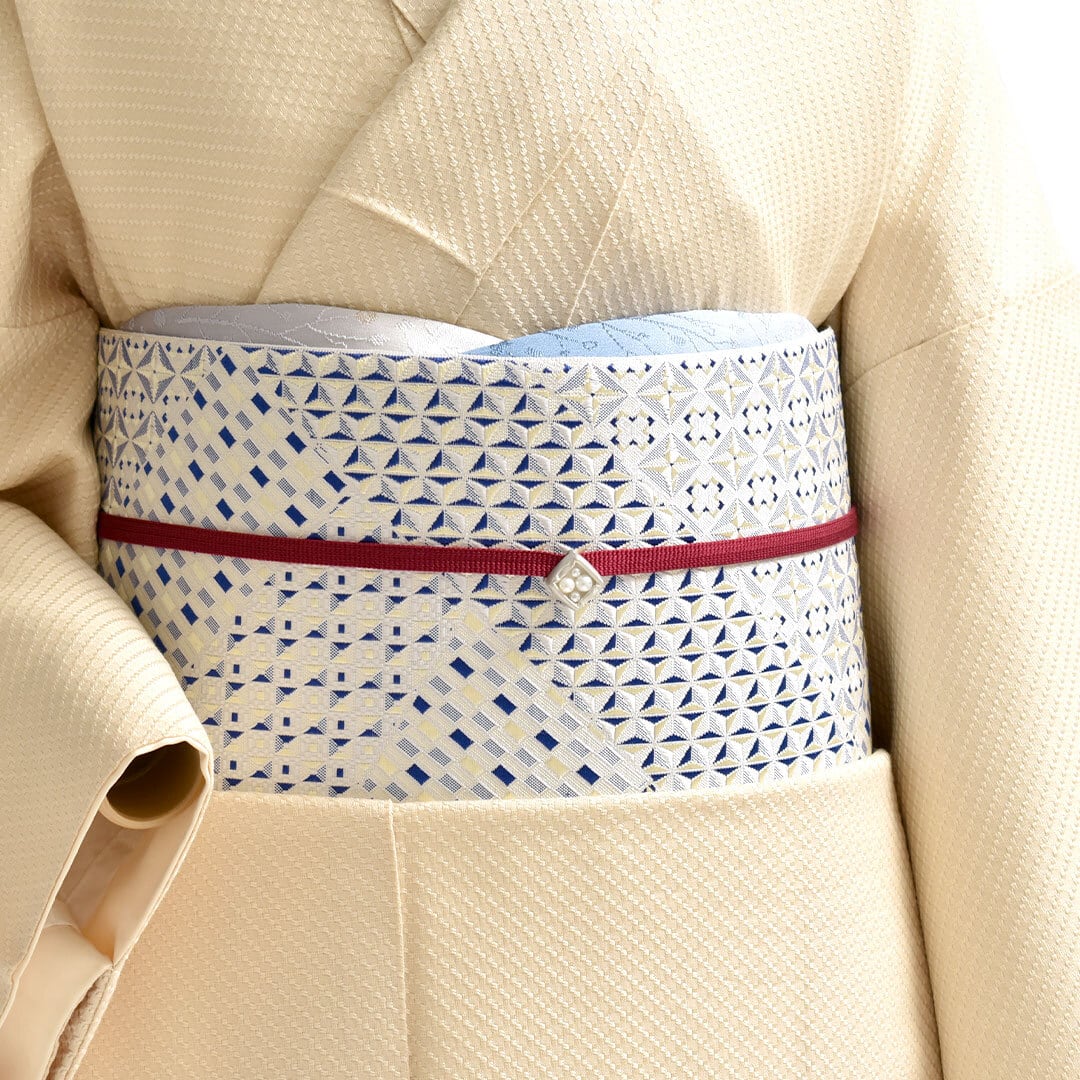 [名古屋帯]西陣織老舗機屋 謹製 切子割付文様 経浮かし錦織 八寸帯 正絹 日本製(商品番号:21674)