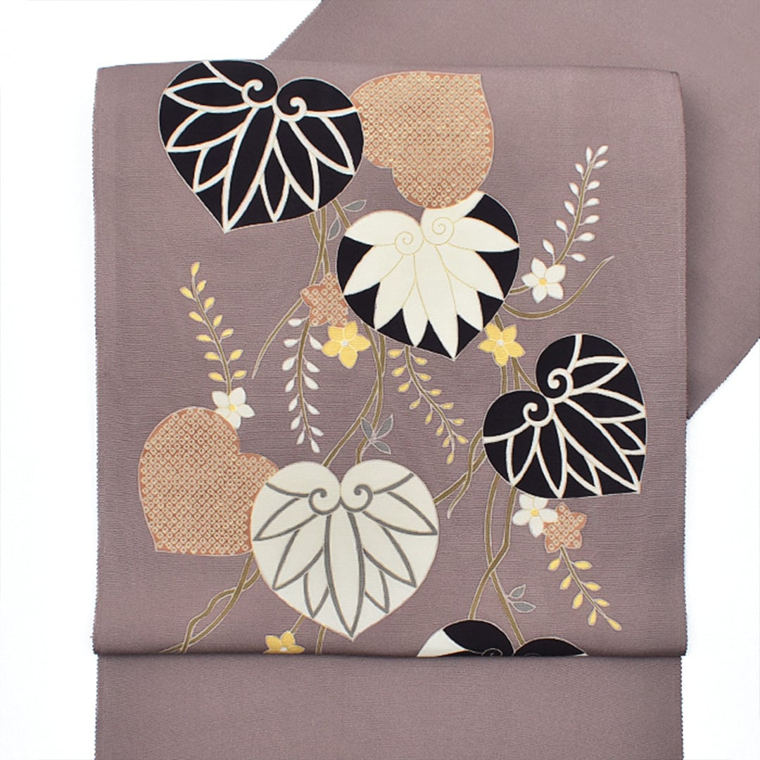 [名古屋帯]塩瀬 新潟 十日町友禅 名門 秀美 謹製 葵文様 九寸帯 おびやオリジナル 正絹 日本製(商品番号:21642)