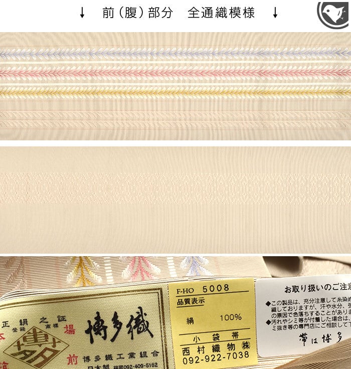 [半幅帯]博多織 西村織物 謹製『結』ぼかし藤 両面柄 本小袋 正絹 日本製(商品番号:21677) お仕立て代込み!送料無料!