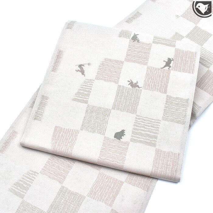 格子柄は帯地よりも少し濃いグレーと