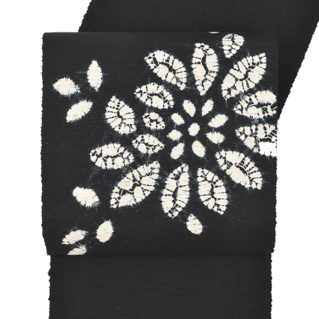 [名古屋帯]有松絞り 老舗 熊谷 謹製 巻き上げ絞り 米沢産 ぜんまい紬 八寸帯 正絹 日本製(商品番号:21529)