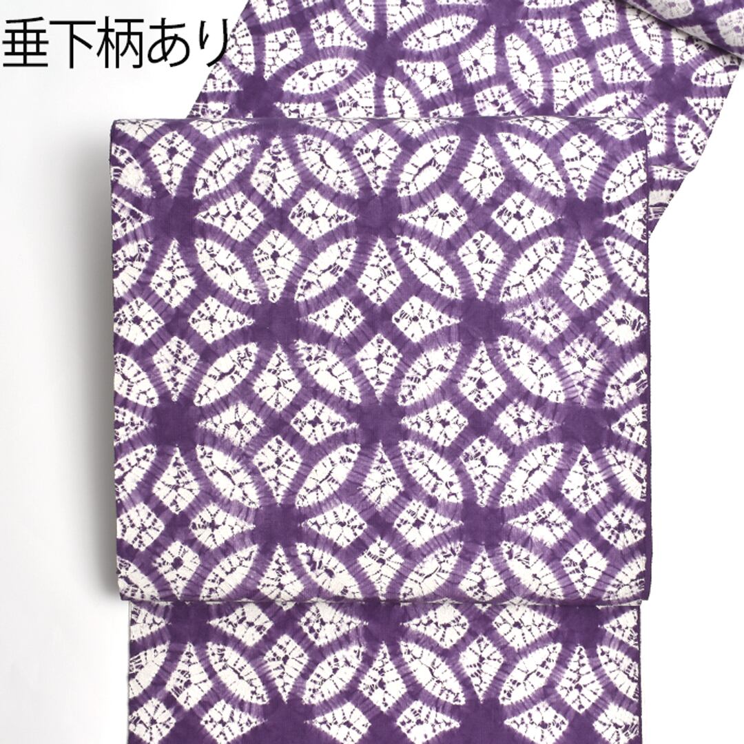 [名古屋帯]紫根染め 白鷹 紫草絞り染め 九寸帯 正絹 日本製(商品番号:21722)