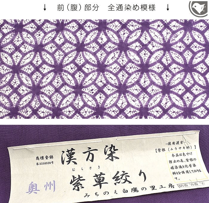 [名古屋帯]紫根染め 白鷹 紫草絞り染め 九寸帯 正絹 日本製(商品番号:21722) お仕立て代込み!送料無料!