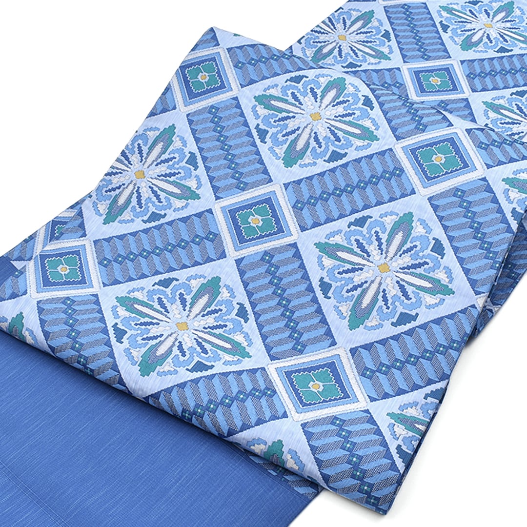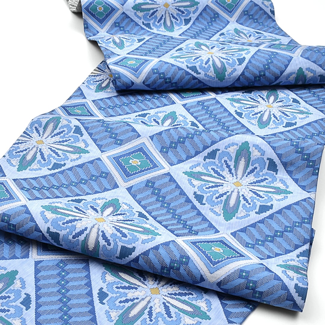 しょうは織のように、帯地と柄に一体感があり