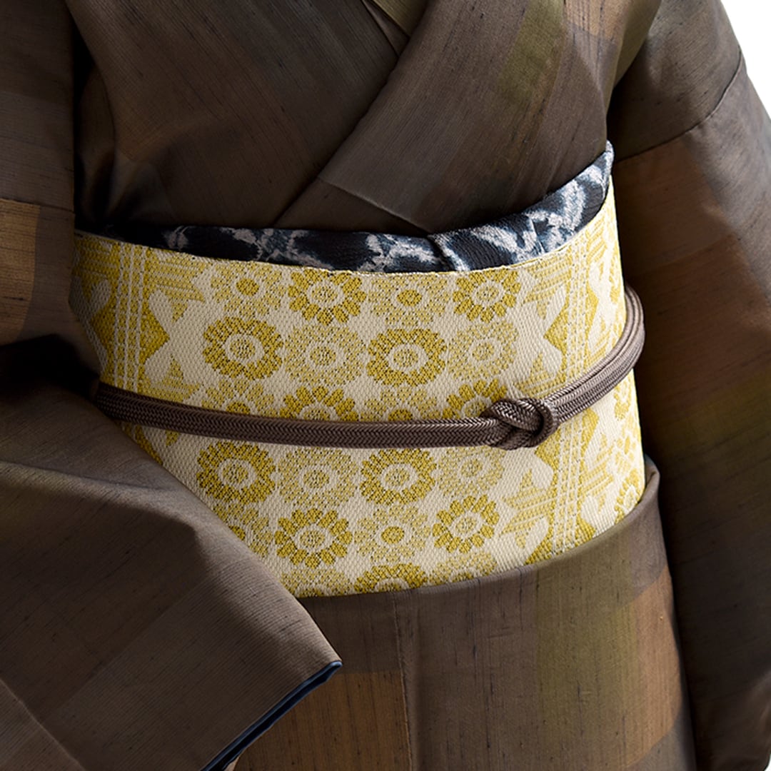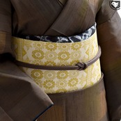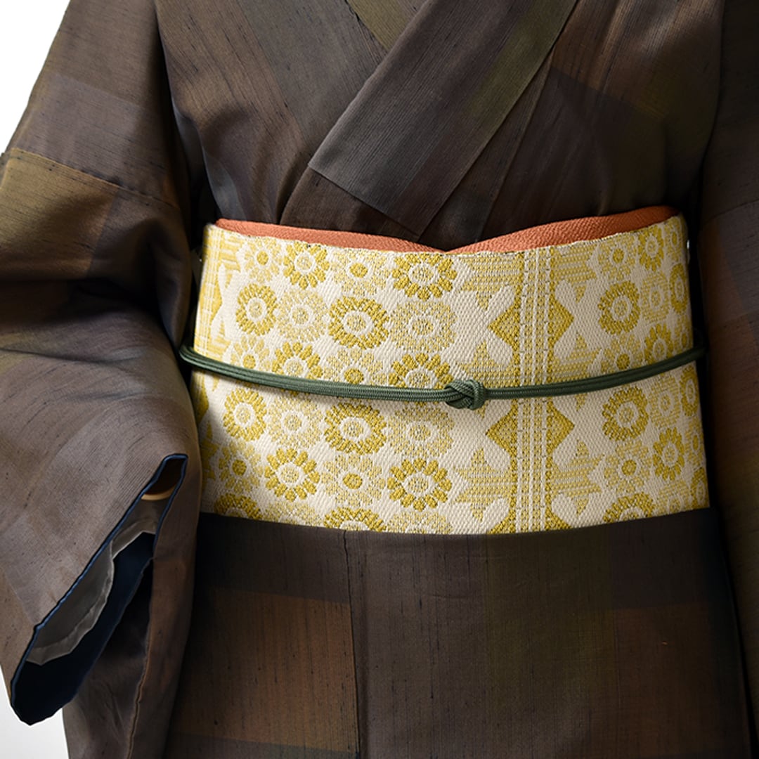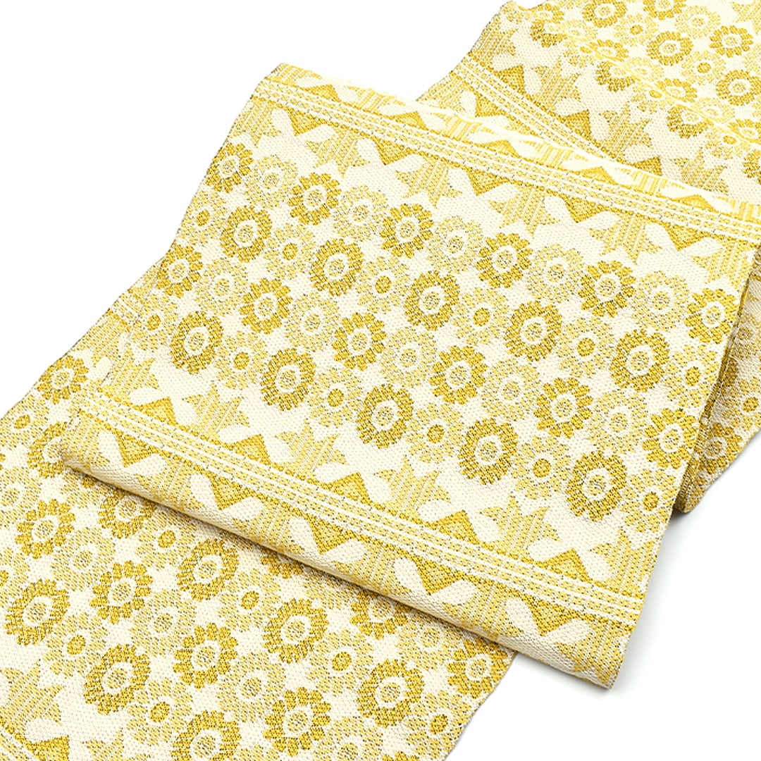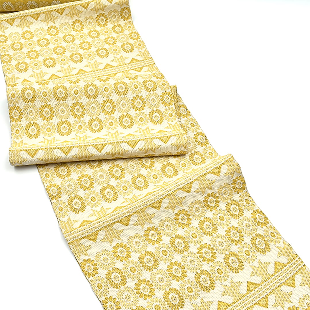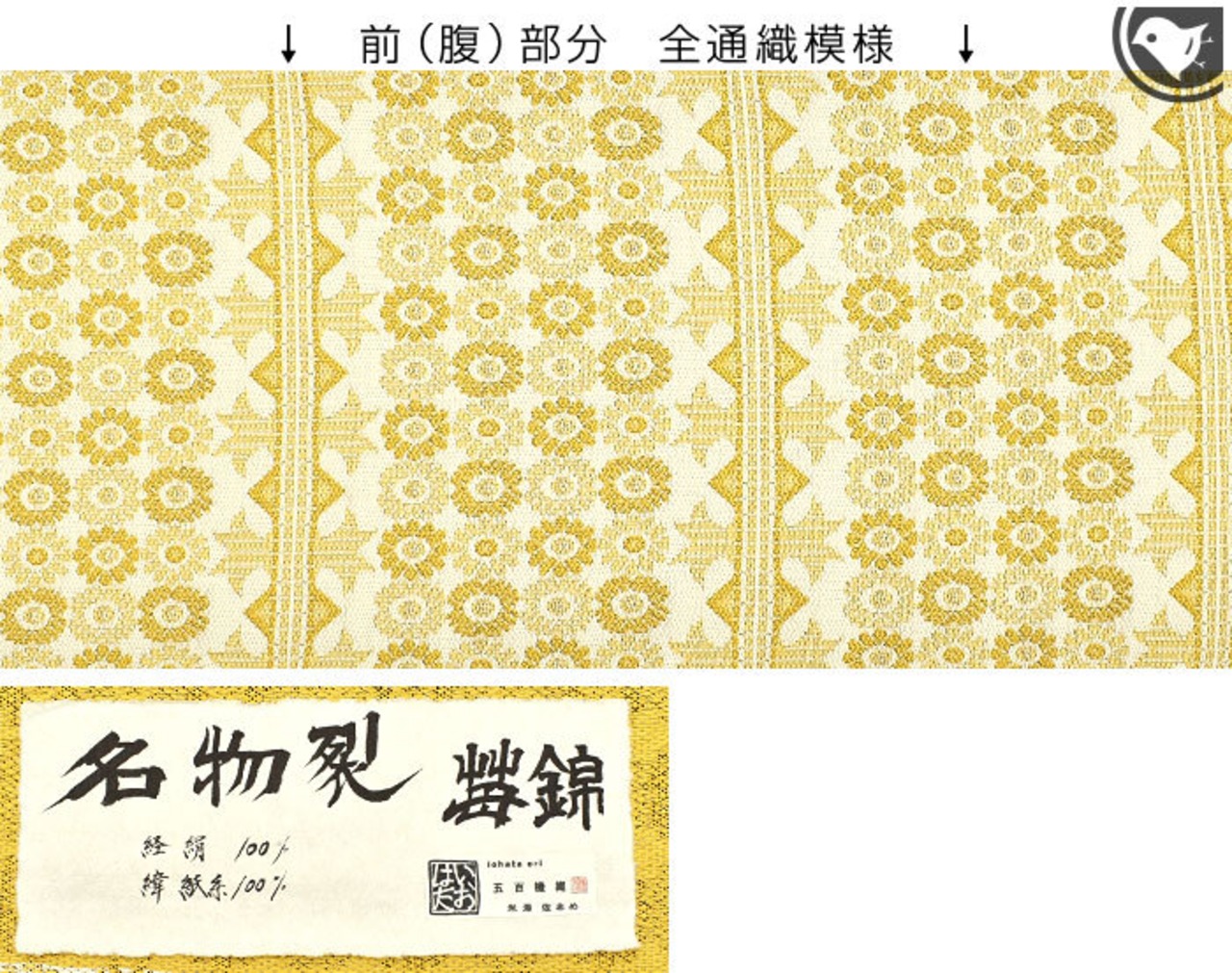 [名古屋帯]米沢 佐志め織物 謹製 五百機織 名物裂 苺錦 八寸帯 和紙 正絹 日本製(商品番号:21738)