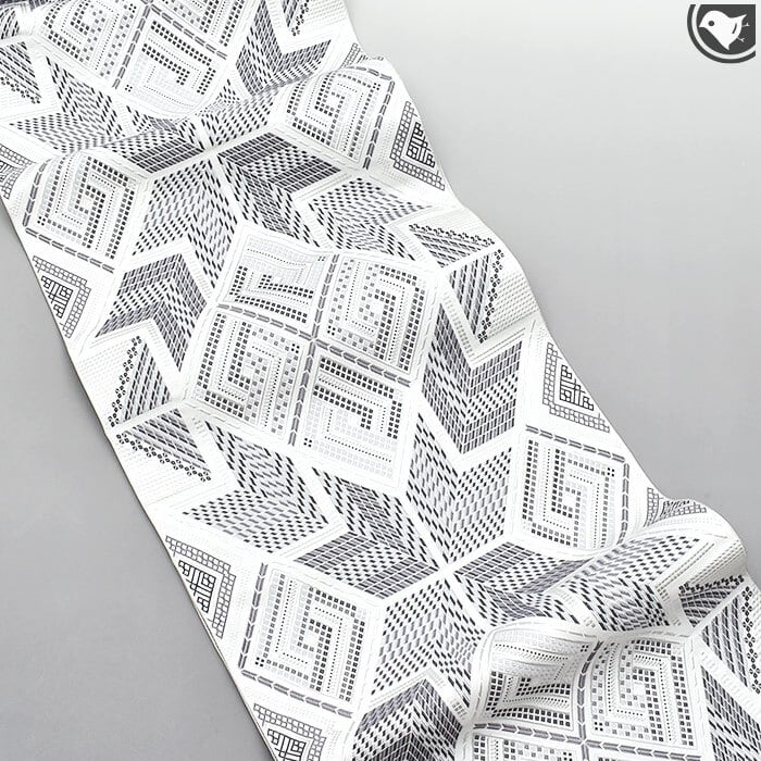 [名古屋帯]博多織 老舗 黒木織物 謹製 矢羽根切子 風通織 本場筑前博多織 金印 八寸帯 正絹 日本製(商品番号:21723) お仕立て代込み!送料無料!