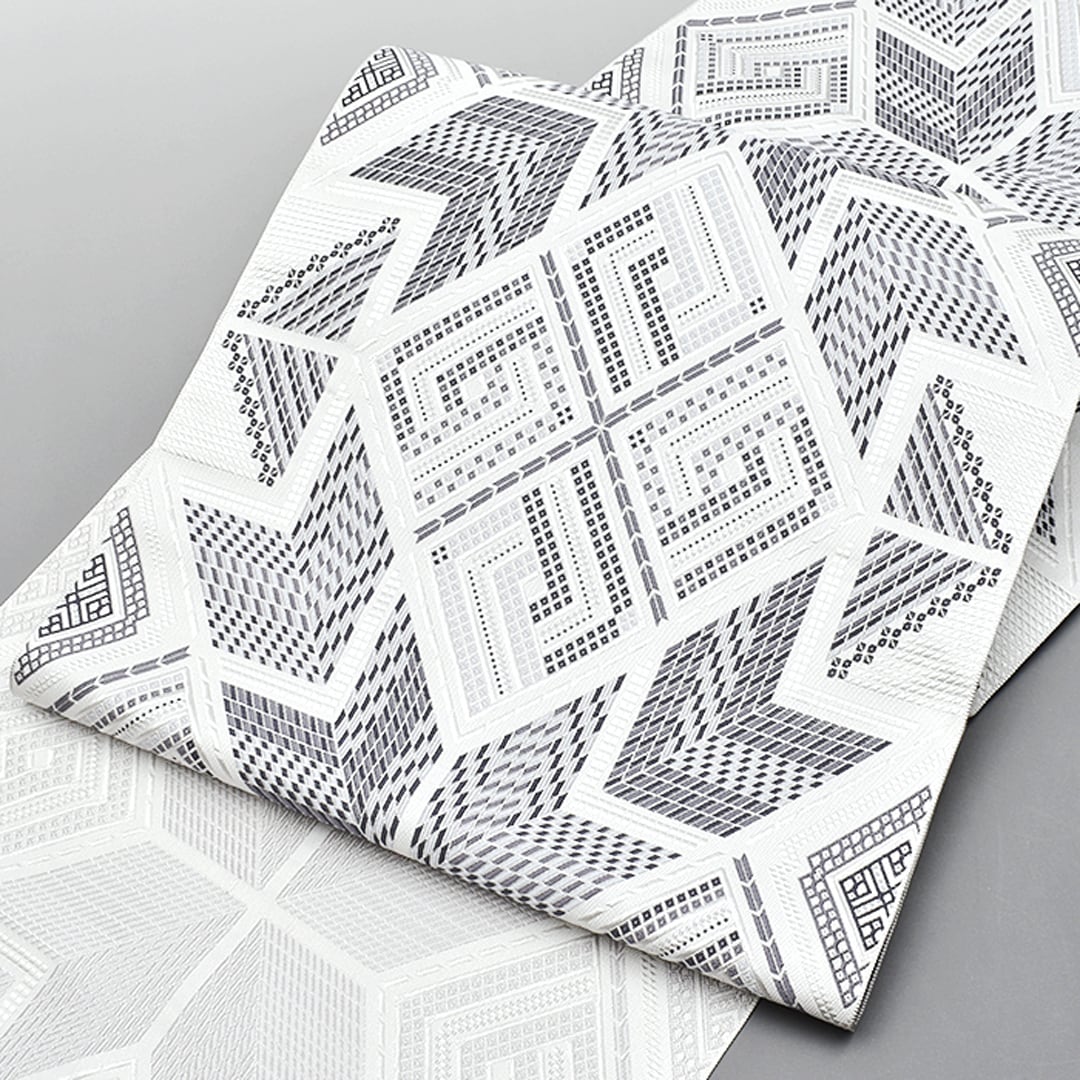 [名古屋帯]博多織 老舗 黒木織物 謹製 矢羽根切子 風通織 本場筑前博多織 金印 八寸帯 正絹 日本製(商品番号:21723)