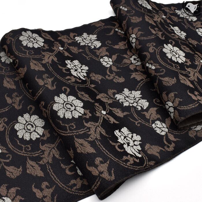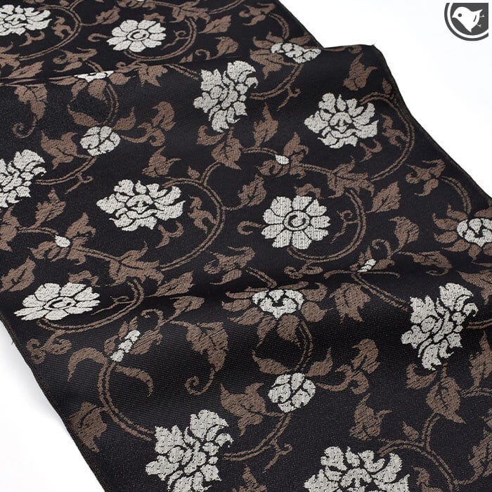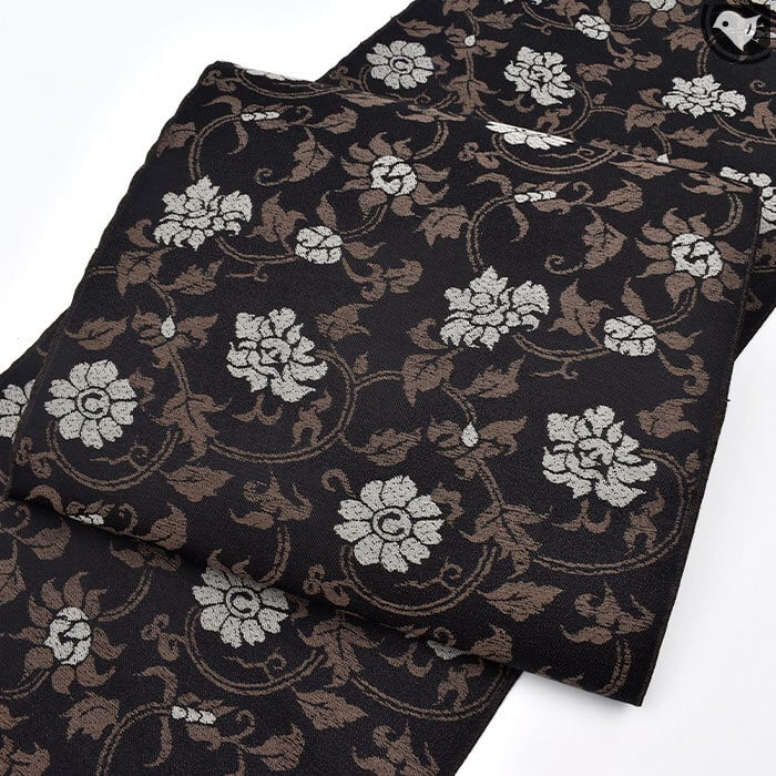[名古屋帯]西陣織 老舗 山下織物 謹製 本場奄美大島 泥草木染め糸 唐花文様 九寸帯 正絹 日本製(商品番号:21757) お仕立て代込み!送料無料!