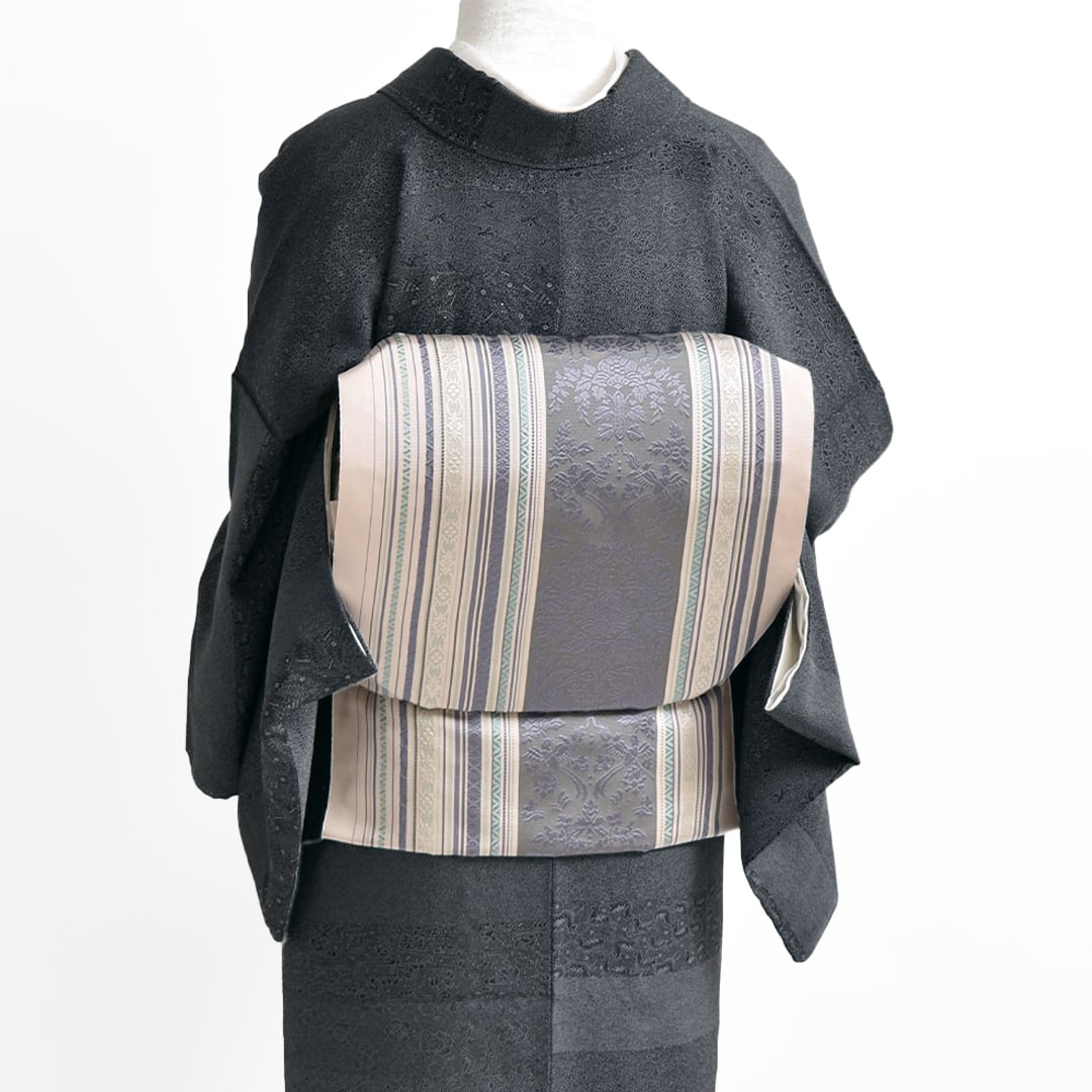 メインの柄は帯地の色合いと一体感ある