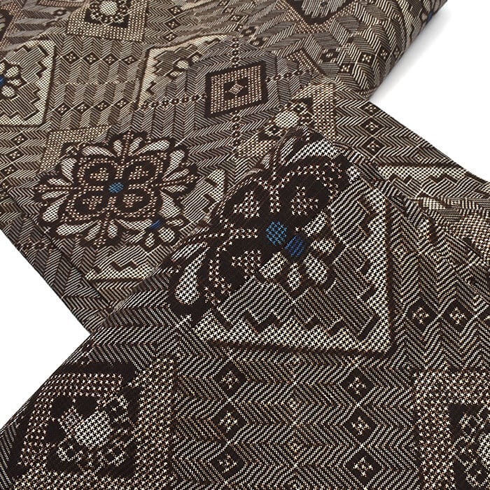 [半幅帯](仕立て上がり)本場奄美大島紬 龍郷柄 本泥染め 切りばめ 手織り 全通柄 正絹 日本製(商品番号:21809) お仕立て代込み!送料無料!
