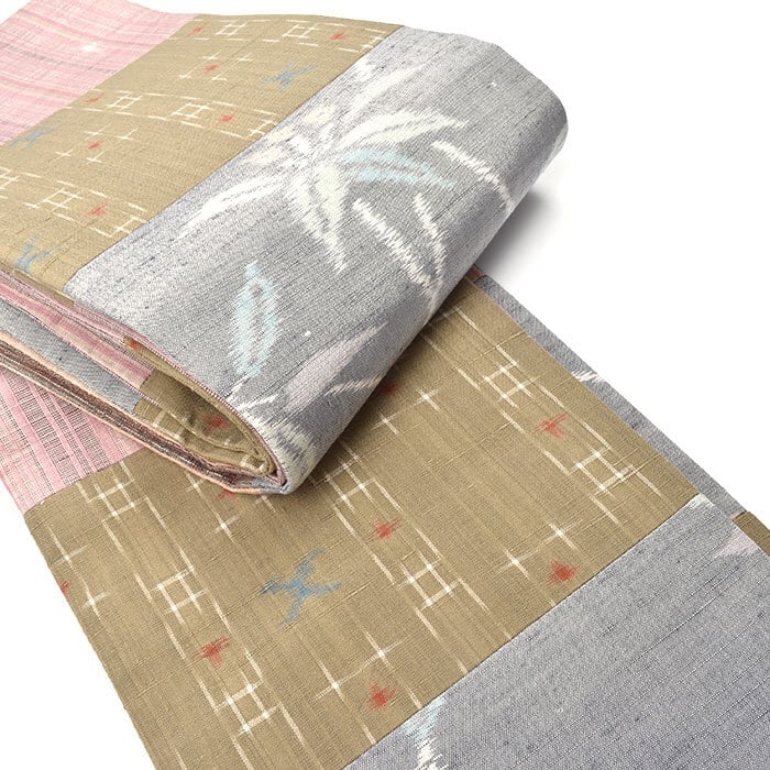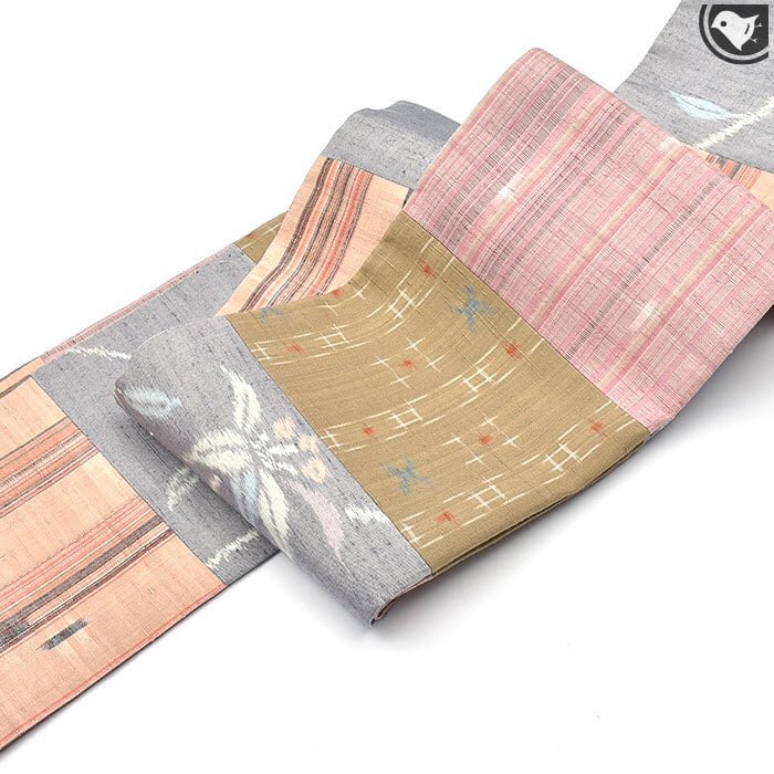 [半幅帯](仕立て上がり)新潟県 十日町紬 切りばめ 全通柄文様 正絹 日本製(商品番号:21806) お仕立て代込み!送料無料!