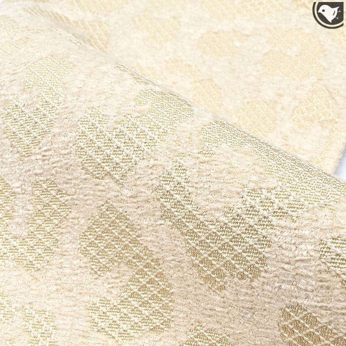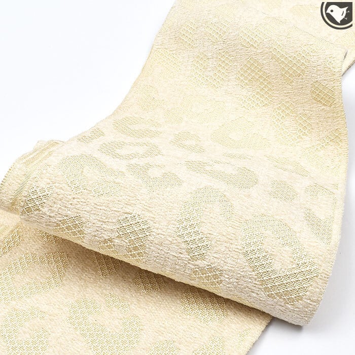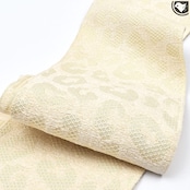 [半幅帯](仕立て上がり)博多織 名門 黒木織物 謹製 シルクモール 白レオパード 全通柄 正絹 日本製(商品番号:21765) お仕立て代込み!送料無料!