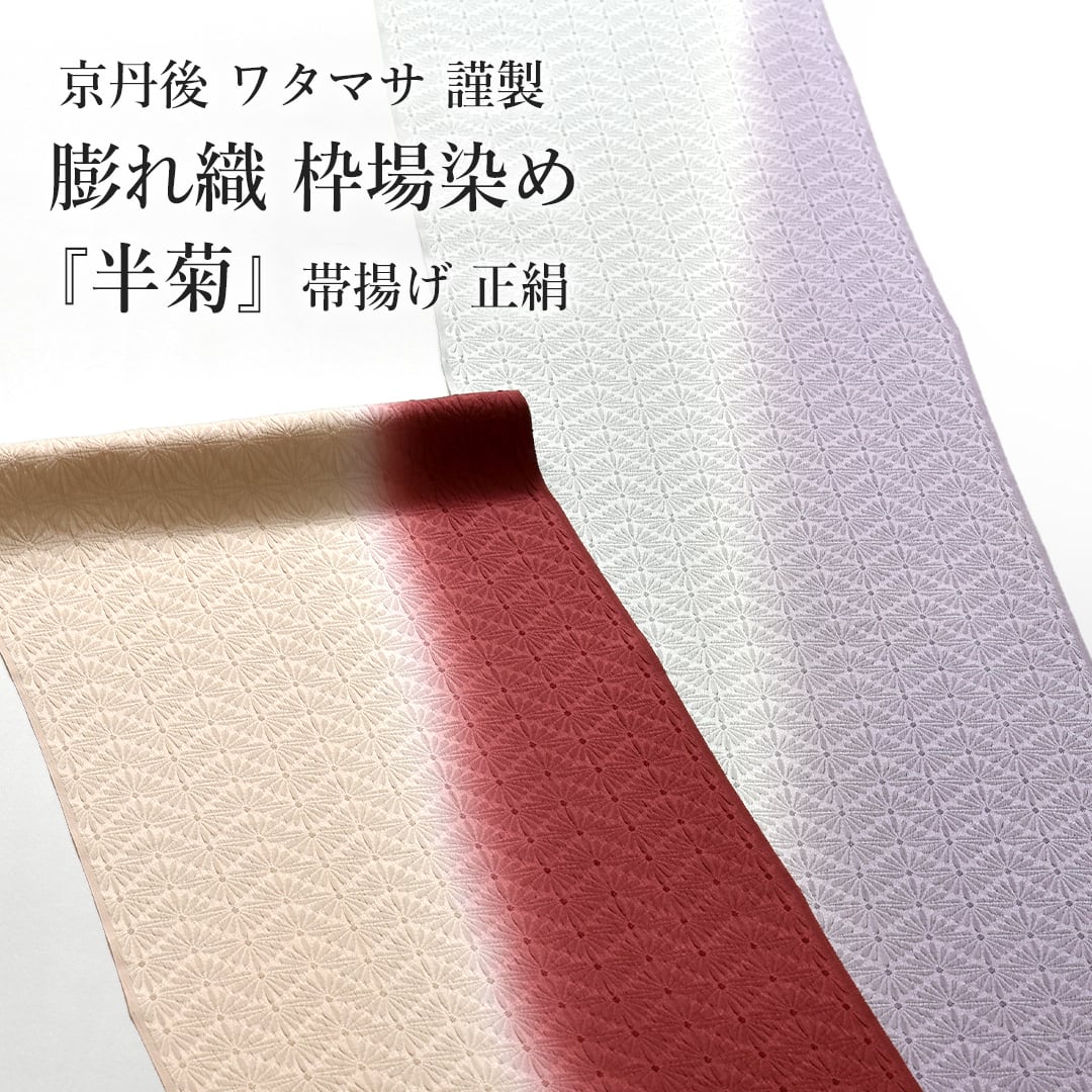 [帯揚げ]京丹後ワタマサ 謹製 半菊 膨れ織 枠場染め ぼかし帯揚げ 正絹 日本製(商品番号:21801) お仕立て代込み!送料無料!