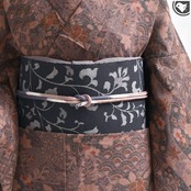 [名古屋帯]結城紬 名門 奥順 謹製 片面唐花文様 八寸帯 正絹 日本製(商品番号:21794) お仕立て代込み!送料無料!