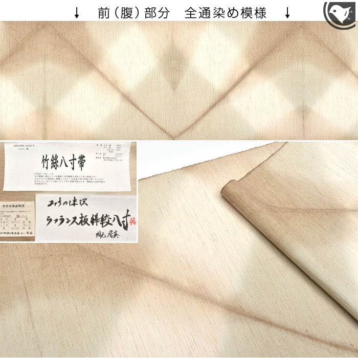 [名古屋帯]米沢紬 齋英織物 謹製 ラフランス板締め絞り 八寸帯 正絹 日本製(商品番号:21824) お仕立て代込み!送料無料!