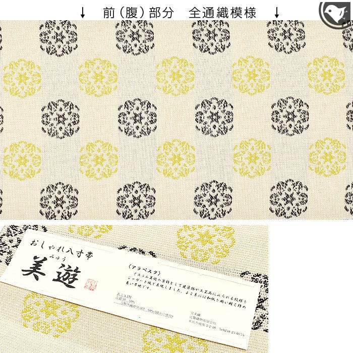 ・名古屋帯・全通柄模様・素材:経糸/絹 緯糸/和紙糸