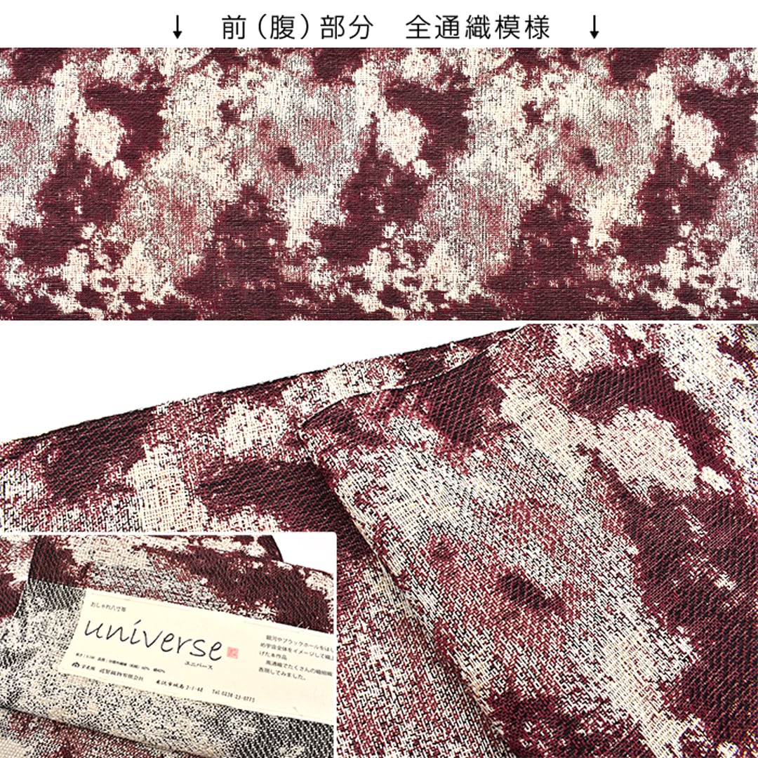 [名古屋帯]米沢紬 名門 近賢織物 謹製『universe』風通織 八寸帯 絹 和紙 日本製(商品番号:21822)