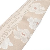 [半幅帯]博多織 老舗 協和織工場 謹製 白茶牡丹 両面柄 正絹 日本製(商品番号:20774)