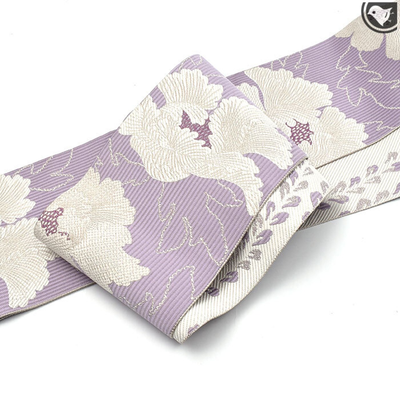 [半幅帯]博多織 老舗 協和織工場 謹製 白牡丹 両面柄 正絹 日本製(商品番号:21763)