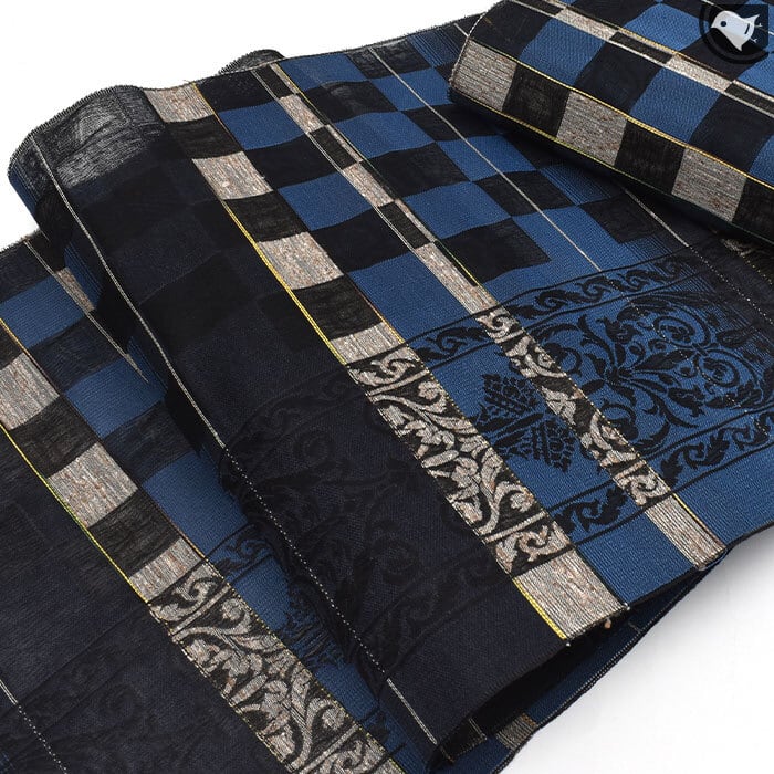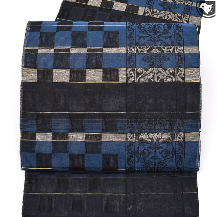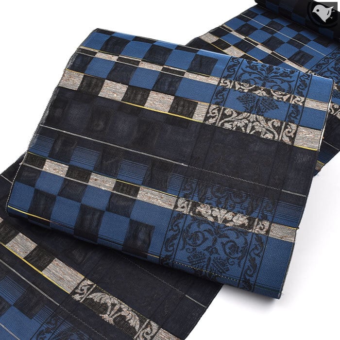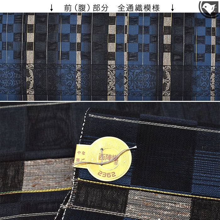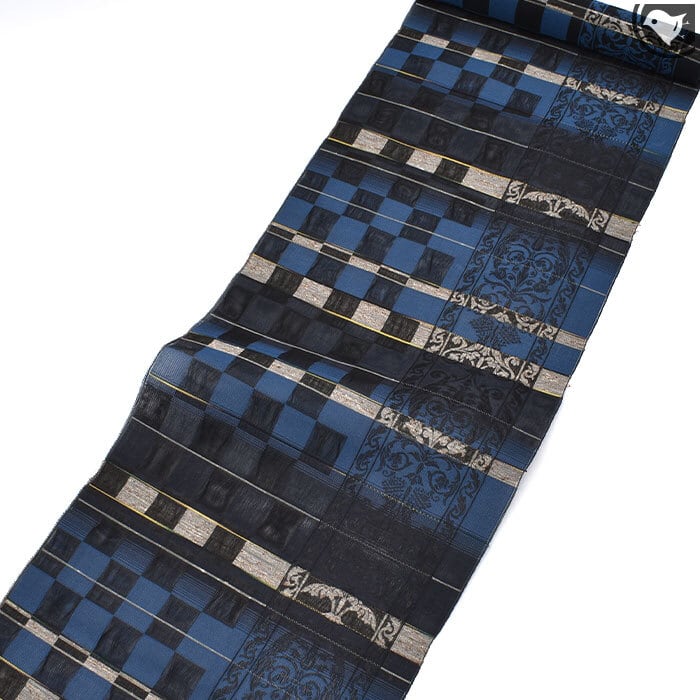 [名古屋帯]西陣織 段ぜんまい装飾格子文 九寸帯 正絹 日本製(商品番号:21848) お仕立て代込み!送料無料!
